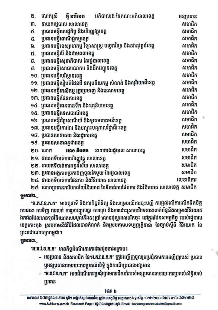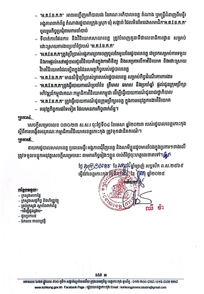សេចក្តីសម្រេច ស្តីពីការកែសម្រួលសមាសភាព អនុគណៈកម្មាធិការវិនិយោគខេត្តកោះកុង