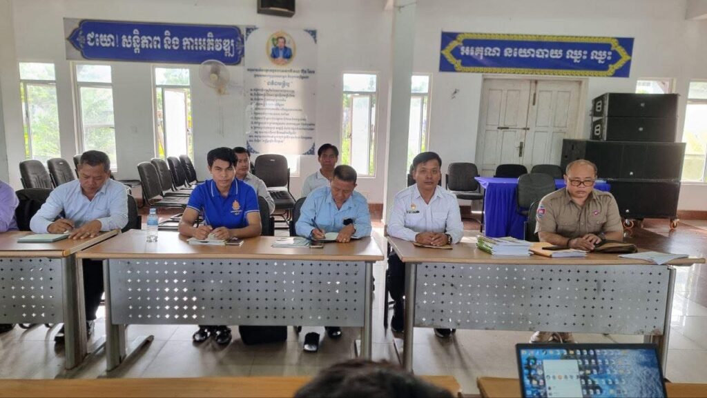 លោក ជា ច័ន្ទកញ្ញា អភិបាល នៃគណៈអភិបាលស្រុកស្រែអំបិល បានដឹកនាំកិច្ចប្រជុំតាមដាន និងត្រួតពិនិត្យការផ្សព្វផ្សាអនុក្រឹត្យលេខ០៣ អនក្រ.បក របស់រាជរដ្ឋាភិបាល ស្តីពីការគ្រប់គ្រងសន្តិសុខសុវត្ថិភាពតាមទីតាំងរស់នៅប្រមូលផ្តុំ
