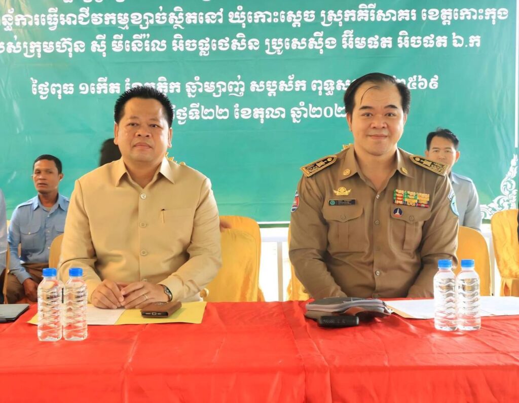 លោក ខ្លឹម យុនវិសិដ្ឋ ប្រធានមន្ទីររ៉ែ និងថាមពលខេត្តកោះកុង បានចូលរួមវេទិកាសាធារណៈ ដើម្បីផ្សព្វផ្សាយ និងពិគ្រោះយោបល់ជាមួយប្រជាពលរដ្ឋពាក់ព័ន្ធនឹងការធ្វើអាជីវកម្មខ្សាច់ ស្ថិតនៅឃុំកោះស្តេច ស្រុកគិរីសាគរ ខេត្តកោះកុង របស់ក្រុមហ៊ុន ស៊ី មីនើរ៉ល អិចផ្លថេសិន ប្រូសេស៊ីន អ៊ឹមផត អិចផត ឯ.ក ក្រោមគណៈអធិបតីភាព លោក កែវ ទួត អគ្គនាយករង នៃអគ្គនាយកដ្ឋានធនធានរ៉ែ តំណាងដ៏ខ្ពង់ខ្ពស់ឯកឧត្តមរដ្ឋមន្រ្តីក្រសួងរ៉ែ និងថាមពល និងលោក ឈេង សុវណ្ណដា អភិបាលរង នៃគណៈអភិបាលខេត្តកោះកុង តំណាងដ៏ខ្ពង់ខ្ពស់លោកជំទាវអភិបាលខេត្ត។