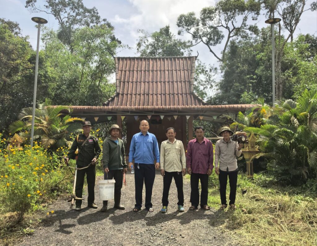 រដ្ឋបាលឃុំឫស្សីជ្រុំ លោក ផង់ សុផាន់ណា មេឃុំឫស្សីជ្រុំ សហការជាមួយ លោក ផល សុផាន់ណា អភិបាលរងស្រុកថ្មបាំង បានដឹកនាំក្រុមការងារភូមិ និងប្រជាការពារភូមិ ចុះសម្អាតអនាម័យនៅអាស្រមលោកយាយម៉ៅ ក្នុងស្រុកថ្មបាំង ខេត្តកោះកុង
