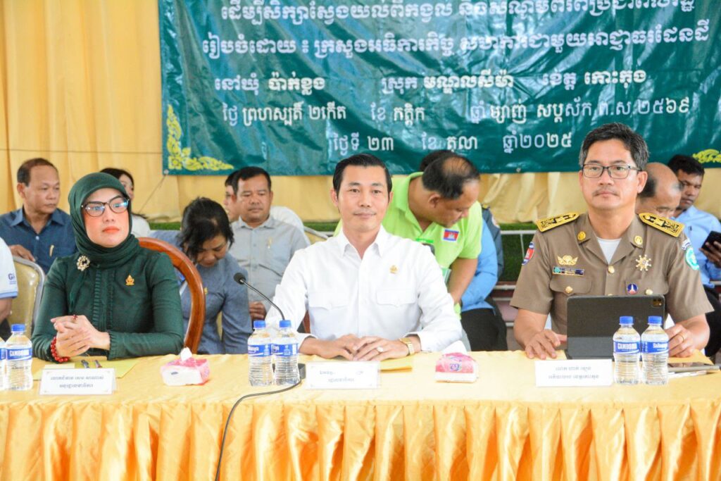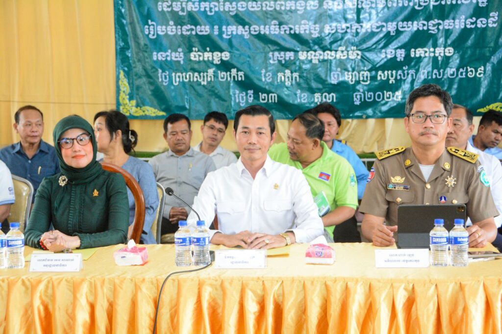 លោក ហាក់ ឡេង អភិបាលរង នៃគណៈអភិបាលខេត្តកោះកុង តំណាងលោកជំទាវ ឈី វ៉ា អភិបាល នៃគណៈអភិបាលខេត្ត បានអញ្ជើញចូលរួមវេទិកាសាធារណៈ ដើម្បីសិក្សាស្វែងយល់ពីកង្វល់ និងសំណូមពរ ពីប្រជាពលរដ្ឋ ក្រោមអធិបតីភាពឯកឧត្តម ចាន់ កុលបុត្រ រដ្ឋលេខាធិការ ក្រសួងអធិការកិច្ច និងជាតំណាងដ៏ខ្ពង់ខ្ពស់ ឯកឧត្តម សុខ សូកេន រដ្ឋមន្ត្រី ក្រសួងអធិការកិច្ច និងលោកជំទាវ សេង សុខណាល់ អនុរដ្ឋលេខាធិការ ក្រសួងអធិការកិច្ច ជូនដល់ប្រជាពលរដ្ឋ ចំនួន ២០០នាក់ នៅឃុំប៉ាក់ខ្លង ស្រុកមណ្ឌលសីមា ខេត្តកោះកុង។