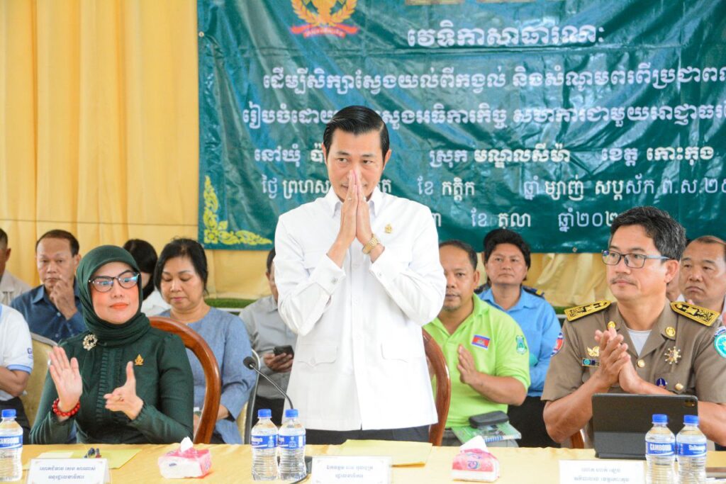 លោក ហាក់ ឡេង អភិបាលរង នៃគណៈអភិបាលខេត្តកោះកុង បានអញ្ជើញចូលរួម វេទិកាសាធារណៈ ដើម្បីសិក្សាស្វែងយល់ពីកង្វល់ និងសំណូមពរ ពីប្រជាពលរដ្ឋ ក្រោមអធិបតីភាពឯកឧត្តម ចាន់ កុលបុត្រ រដ្ឋលេខាធិការ ក្រសួងអធិការកិច្ច ជូនដល់ប្រជាពលរដ្ឋ ចំនួន ២០០នាក់ នៅឃុំប៉ាក់ខ្លង ស្រុកមណ្ឌលសីមា ខេត្តកោះកុង