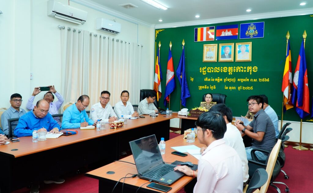 លោកស្រី អ៉ី នារីនេត អភិបាលរង នៃគណៈអភិបាលខេត្តកោះកុង បានអញ្ជើញដឹកនាំ កិច្ចប្រជុំពិភាក្សាលើសំណើរបស់ឈ្មោះ វង្ស គីមហាន និងឈ្មោះ យ៉េ ភូជាង ស្នើសូមចាក់បំពេញខ្សាច់ធម្មជាតិ នៅនាងកុក ឃុំប៉ាក់ខ្លង ស្រុកមណ្ឌលសីមា ខេត្តកោះកុង