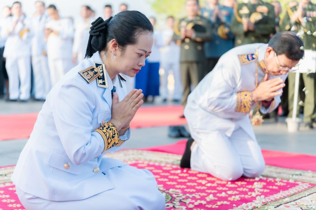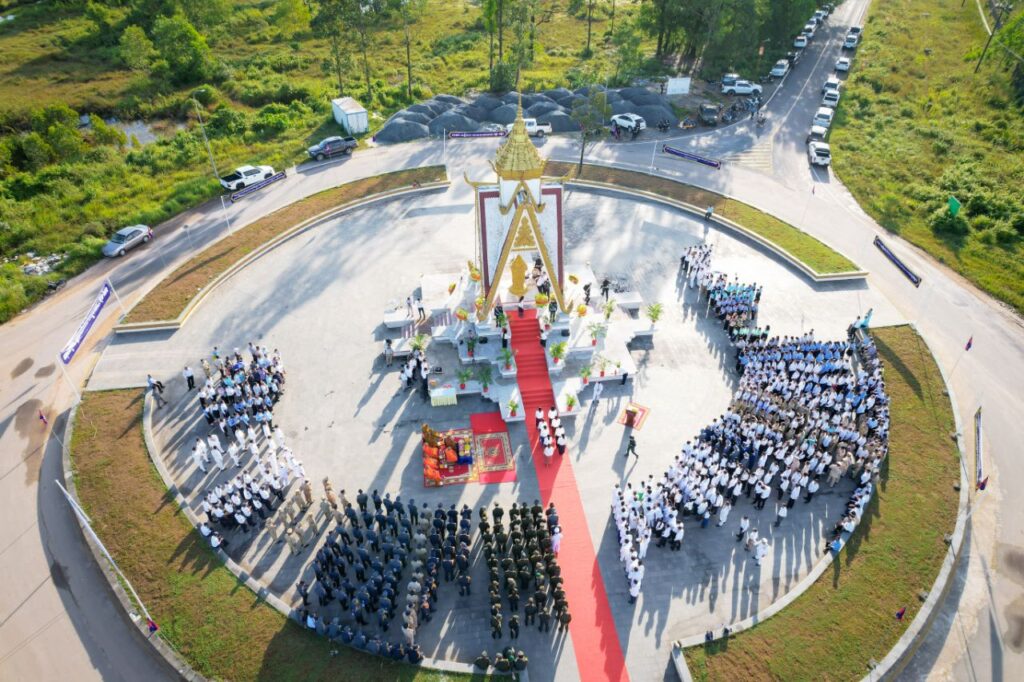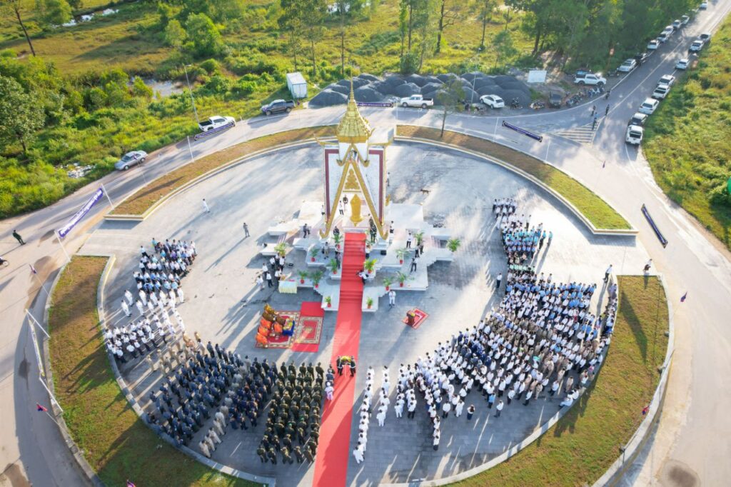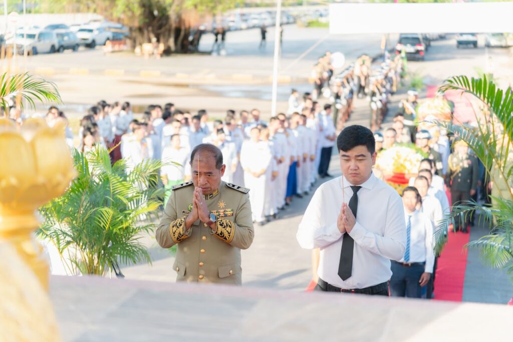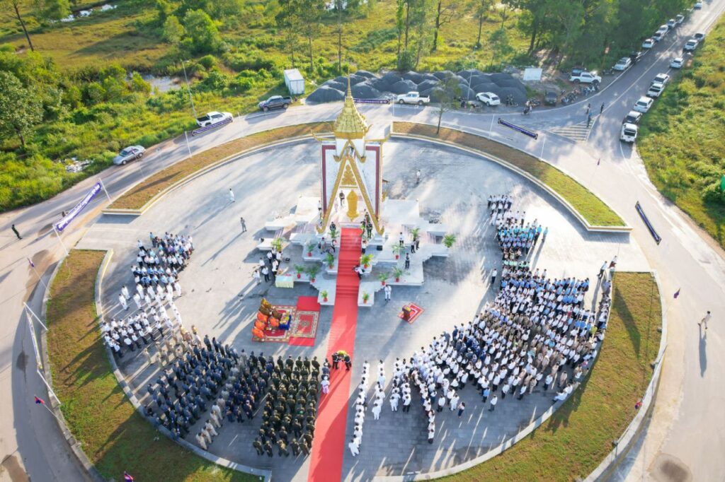 ឯករាជ្យជាតិ ដែលជាមហាប្រវត្តិសាស្ត្រនេះ សម្រេចបានក្រោមព្រះរាជបូជនីយកិច្ចដឹកនាំដ៏ឈ្លាសវៃ និងខ្ញៀវខ្ញាររបស់ព្រះមហាវីរក្សត្រខ្មែរ ព្រះករុណាព្រះបាទសម្តេចព្រះ នរោត្តម សីហនុ ព្រះវររាជបិតាឯករាជ្យជាតិ ព្រះបិតាបង្រួបបង្រួមជាតិ “ព្រះបរមរតនកោដ្ឋ” នៃយើង។