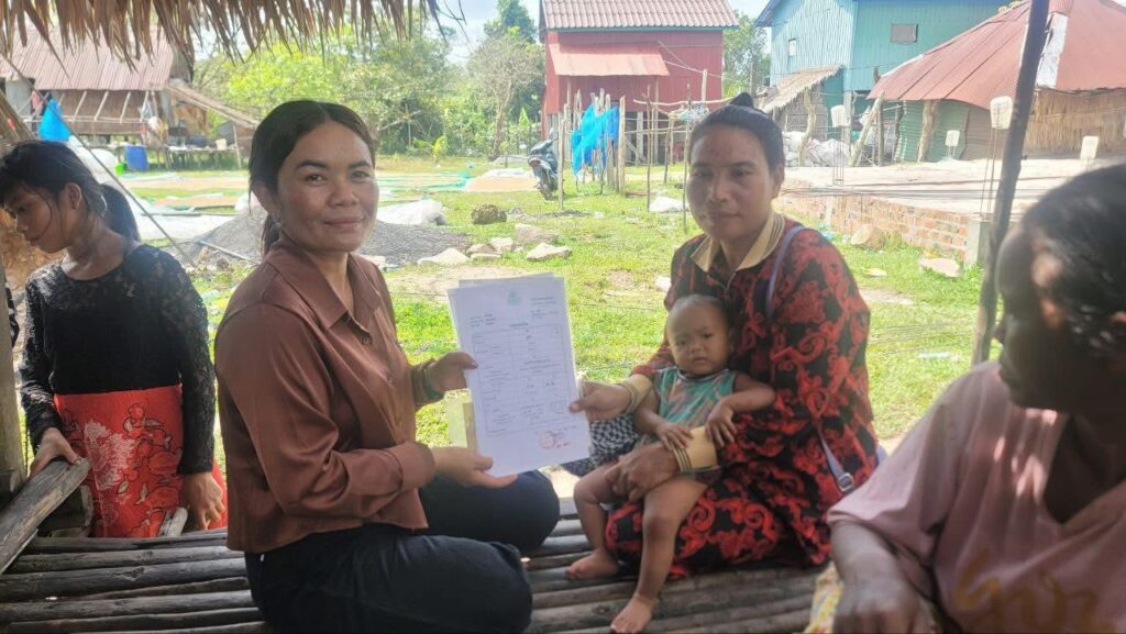 និងបានចុះផ្តល់សំបុត្រកំណើតជូនដល់គ្រួសារឈ្មោះ ទឺ រឿន ដែលមានកូនស្រីទើបនិងសម្រាលមានអាយុ ៣ខែ ស្ថិតនៅភូមិប្រលាន ឃុំកណ្តោល ស្រុកបូទុមសាគរ ខេត្តកោះកុង