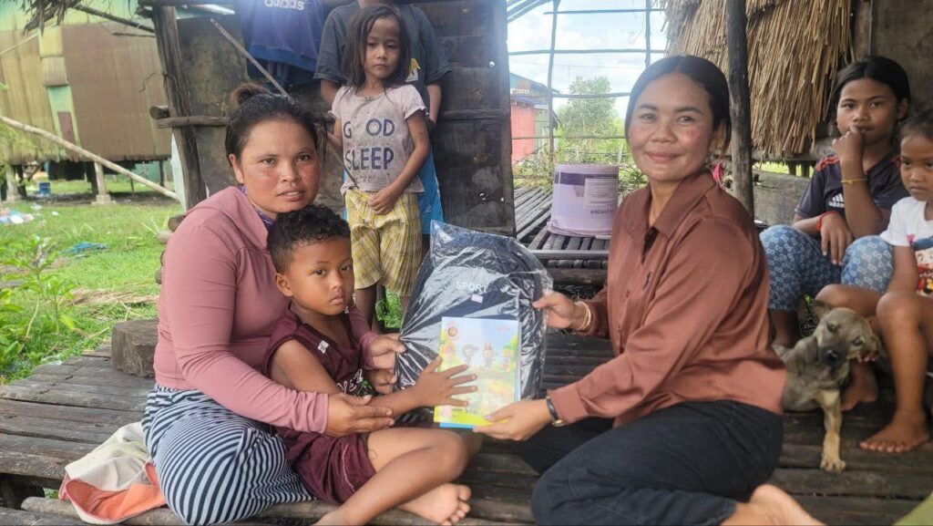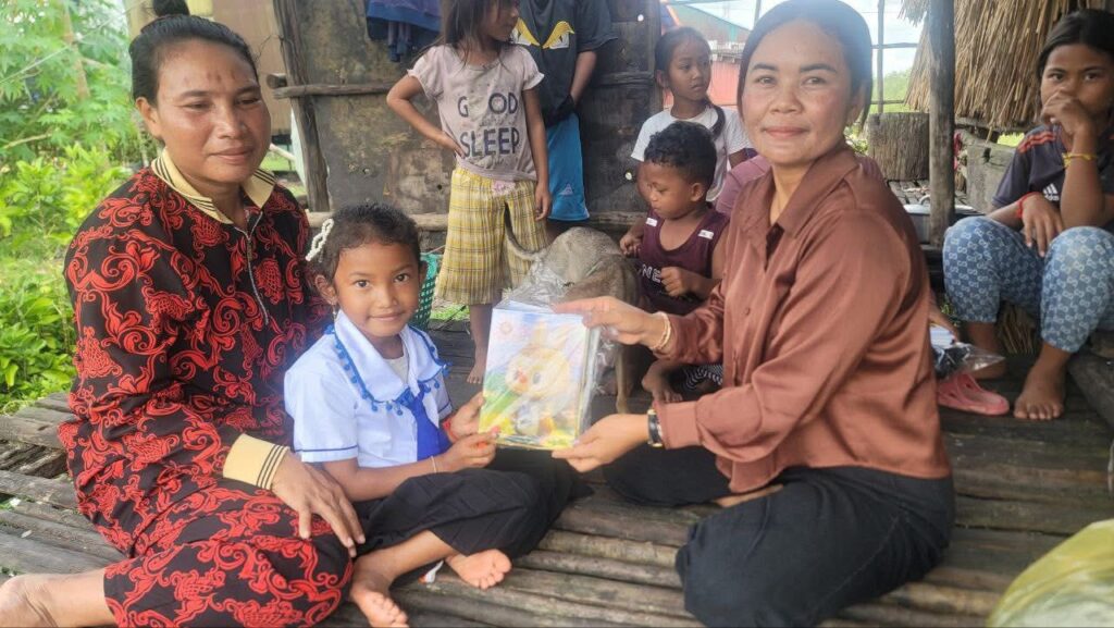 ទទួលបន្ទុក កិច្ចការនារីនិងកុមារឃុំ បានចុះសួរសុខនិងនាំយកសម្ភារៈសិក្សា ជូនដល់ប្រជាពលរដ្ឋចំនួន២គ្រួសារ ដែលខ្វះខាតសម្ភារ:សម្រាប់ឲ្យកូនទៅរៀន