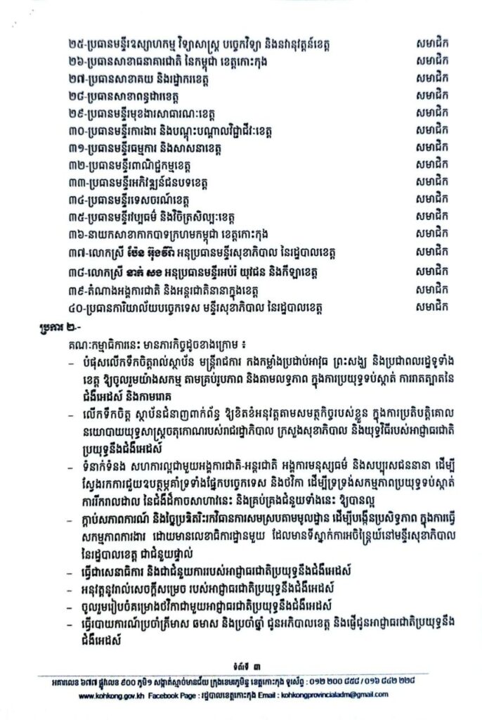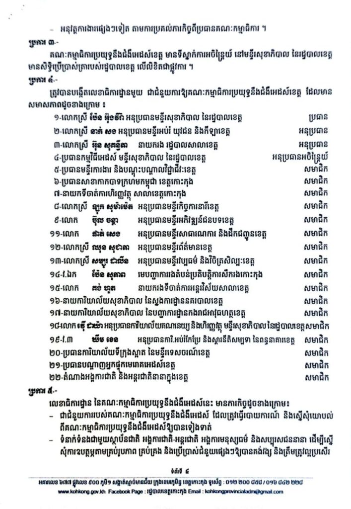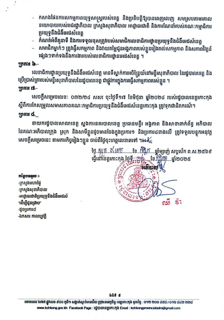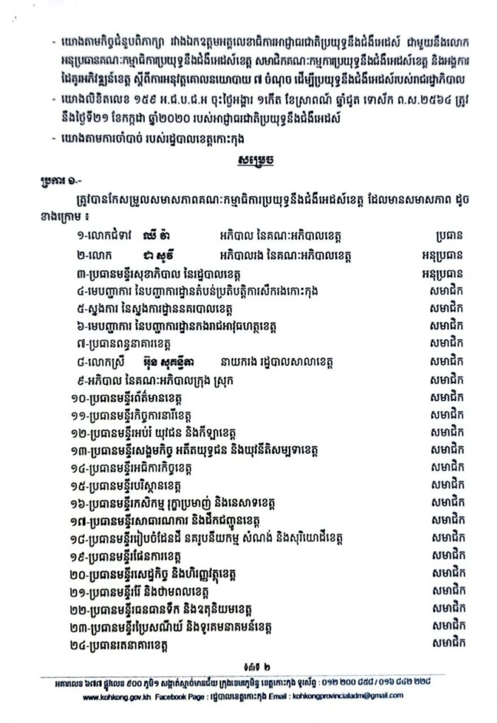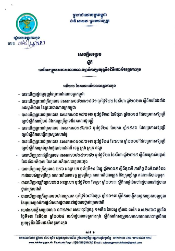 សេចក្តីសម្រេច ស្តីពីការកែសម្រួលសមាសភាពគណៈកម្មាធិការប្រយុទ្ធនឹងជំងឺអេដស៍ខេត្តកោះកុង
