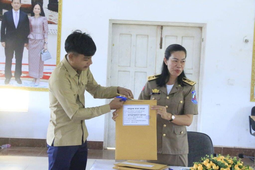លោកស្រី អ៉ិន សុភី អភិបាលស្តីទី និងជាអនុប្រធានគណៈកម្មាធិការលទ្ធកម្មស្រុក បានដឹកនាំកិច្ចប្រជុំបើកសំណើដេញថ្លៃការងារជួសជុលផ្លូវបេតុងអាមេចំនួន ១ខ្សែ បណ្តោយប្រវែង ៩៩៧ម៉ែត្រ មាន២កំណាត់, កំណាត់ទី១ បណ្តោយប្រវែង៦១៧ម៉ែត្រ ទទឹង៥ម៉ែត្រ កម្រាស់ ០.១៥ម៉ែត្រ ស្ថិតនៅភូមិព្រលាន និងកំណាត់ទី២ បណ្តោយប្រវែង ៣៨០ម៉ែត្រ ទទឹង ៥ម៉ែត្រ កម្រាស់ ០.១៥ម៉ែត្រ និងដាក់ស្លាកសញ្ញាគម្រោង ១កន្លែង