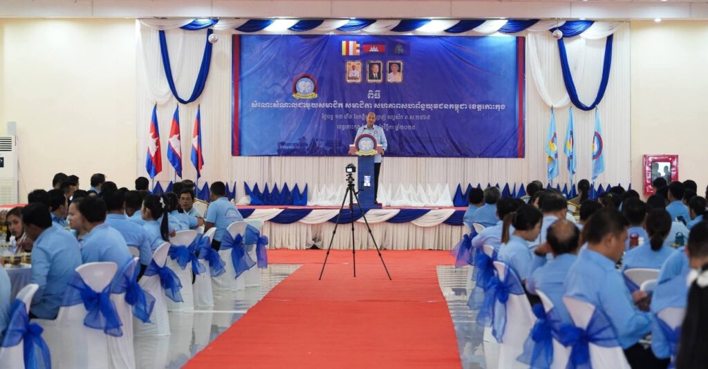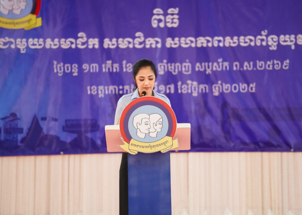 លោកជំទាវ ឈី វ៉ា អភិបាល នៃគណៈអភិបាលខេត្តកោះកុង បានអញ្ជើញអមដំណើរ ឯកឧត្តម ហ៊ុន ម៉ានី ឧបនាយករដ្ឋមន្ត្រី រដ្ឋមន្ត្រីក្រសួងមុខងារសាធារណៈ ក្នុងពិធីសំណេះសំណាល ជាមួយសមាជិក សមាជិកា សហភាពសហព័ន្ធយុវជនកម្ពុជាខេត្តកោះកុង។