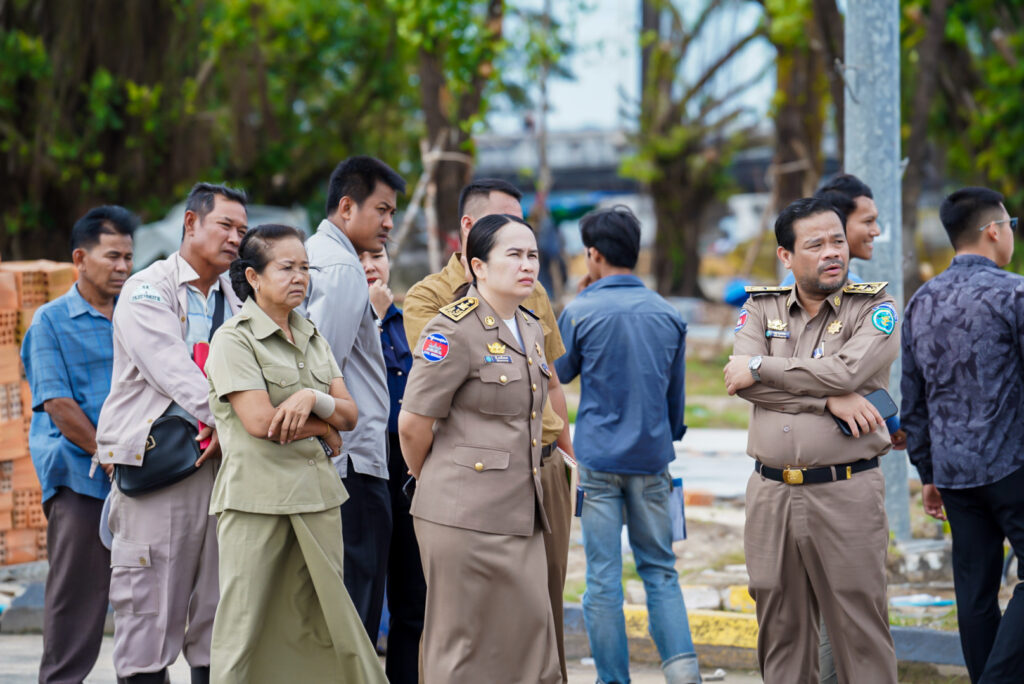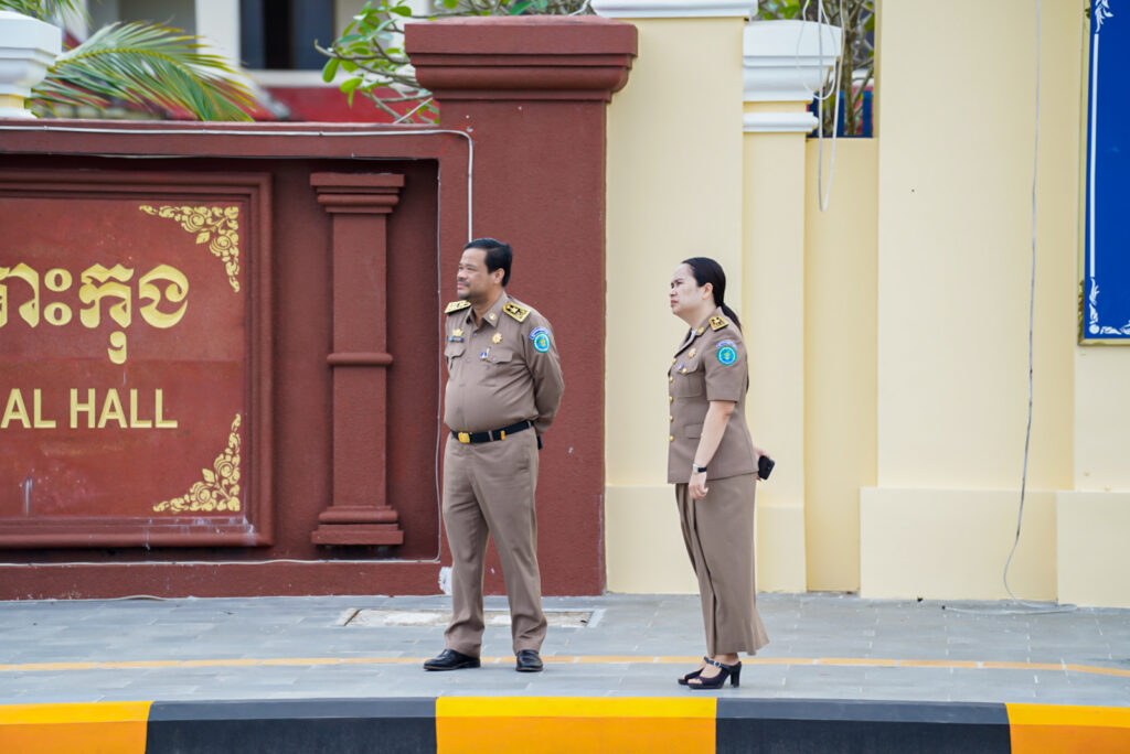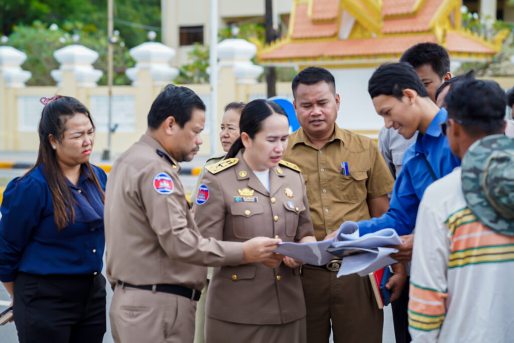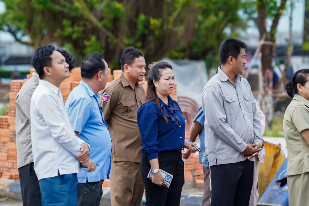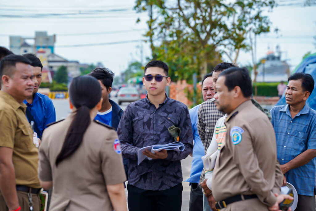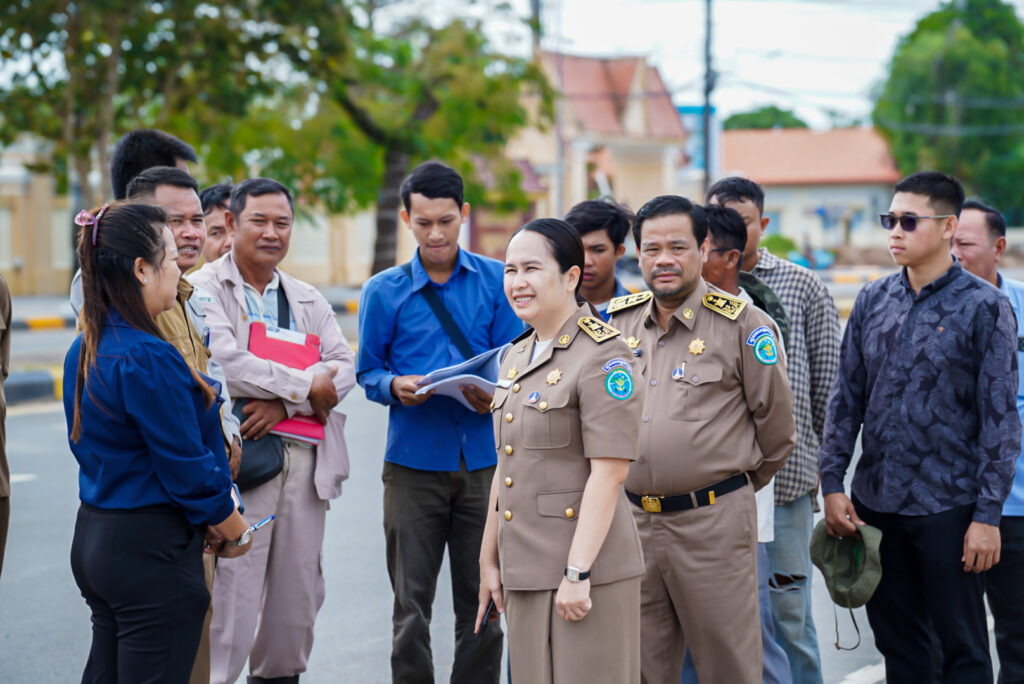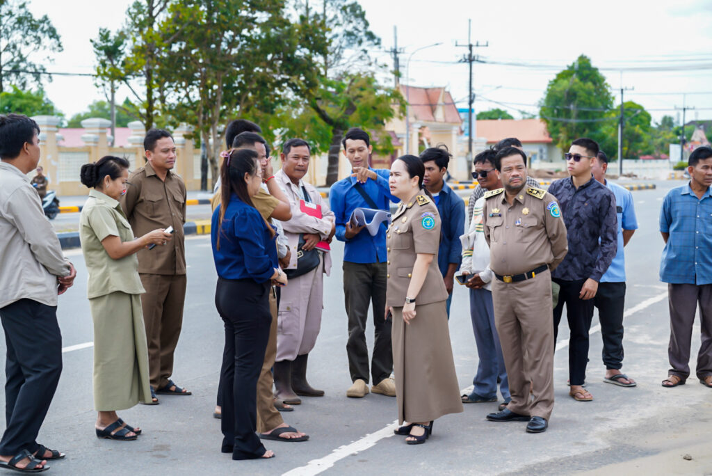 លោក ទៀ សុរៈឆ័យ អភិបាលស្ដីទីខេត្ដកោះកុង អមដំណើរដោយលោកស្រី អ៉ី នារីនេត អភិបាលរង នៃគណៈអភិបាលខេត្ត បានដឹកនាំក្រុមការងារ ចុះពិនិត្យមើលដំណើរការ នៃការសាងសង់សួនច្បារ នៅមុខសាលាខេត្តកោះកុង។