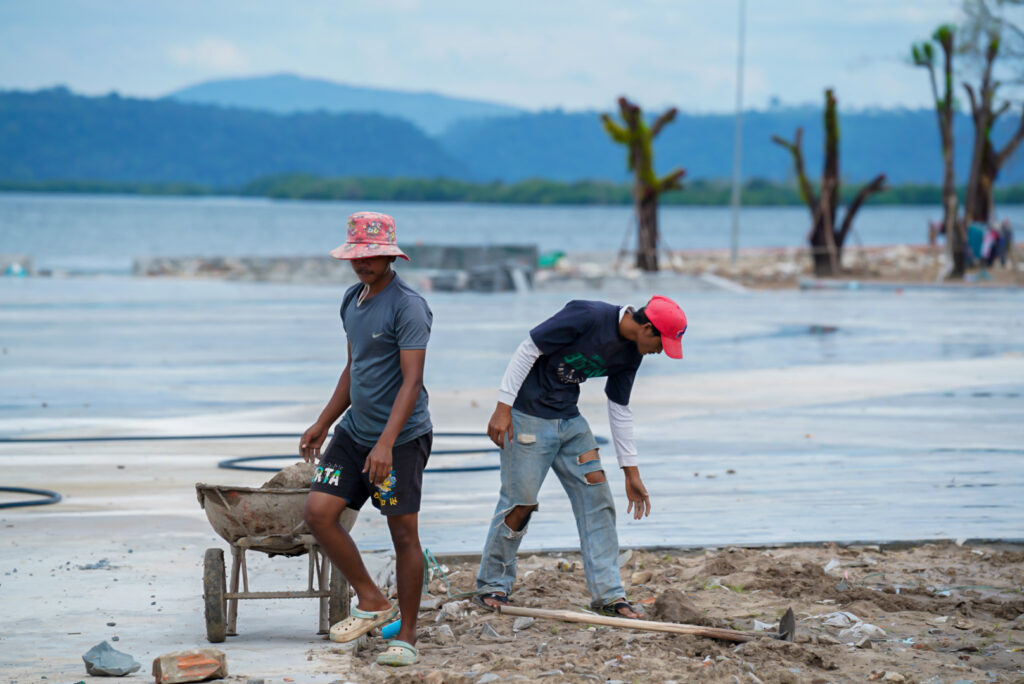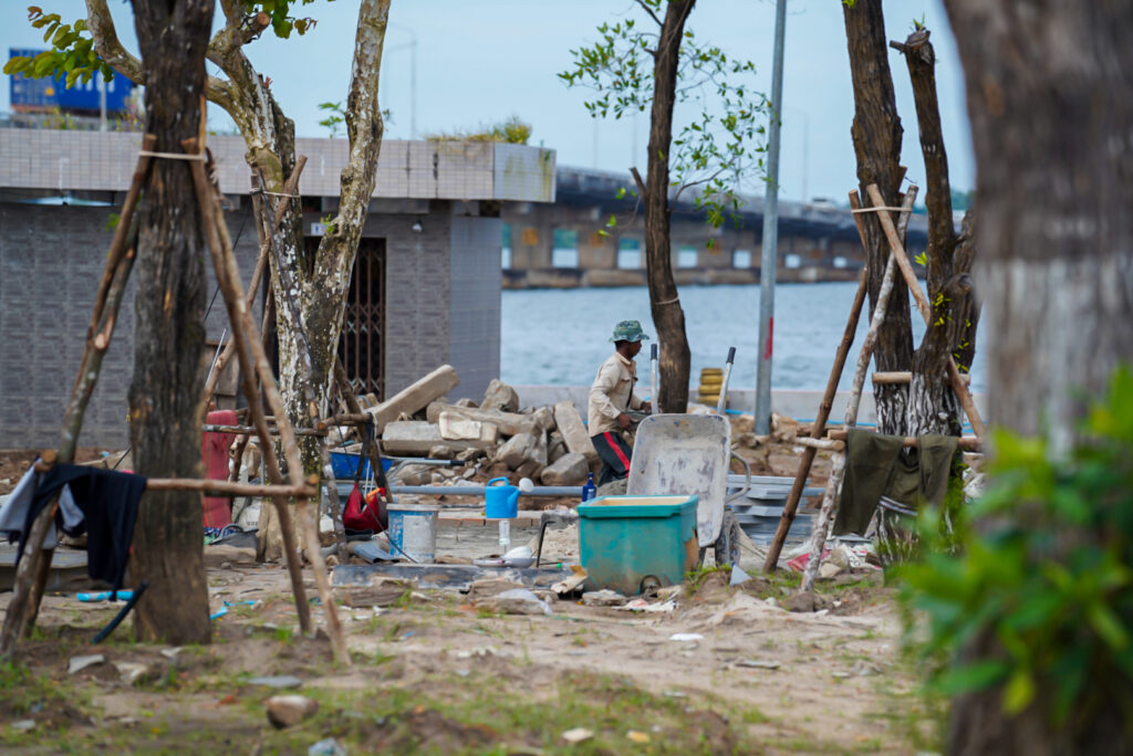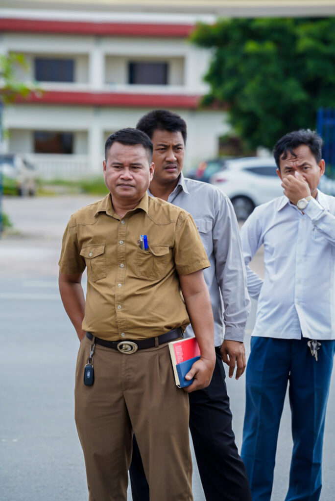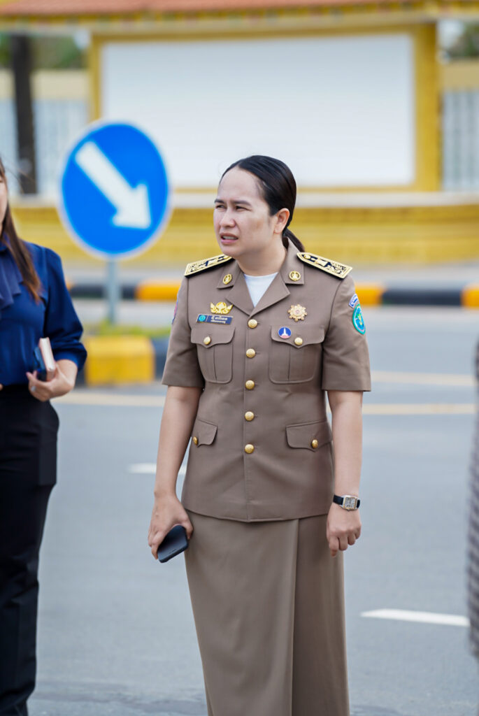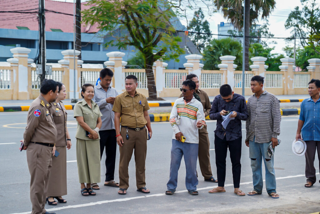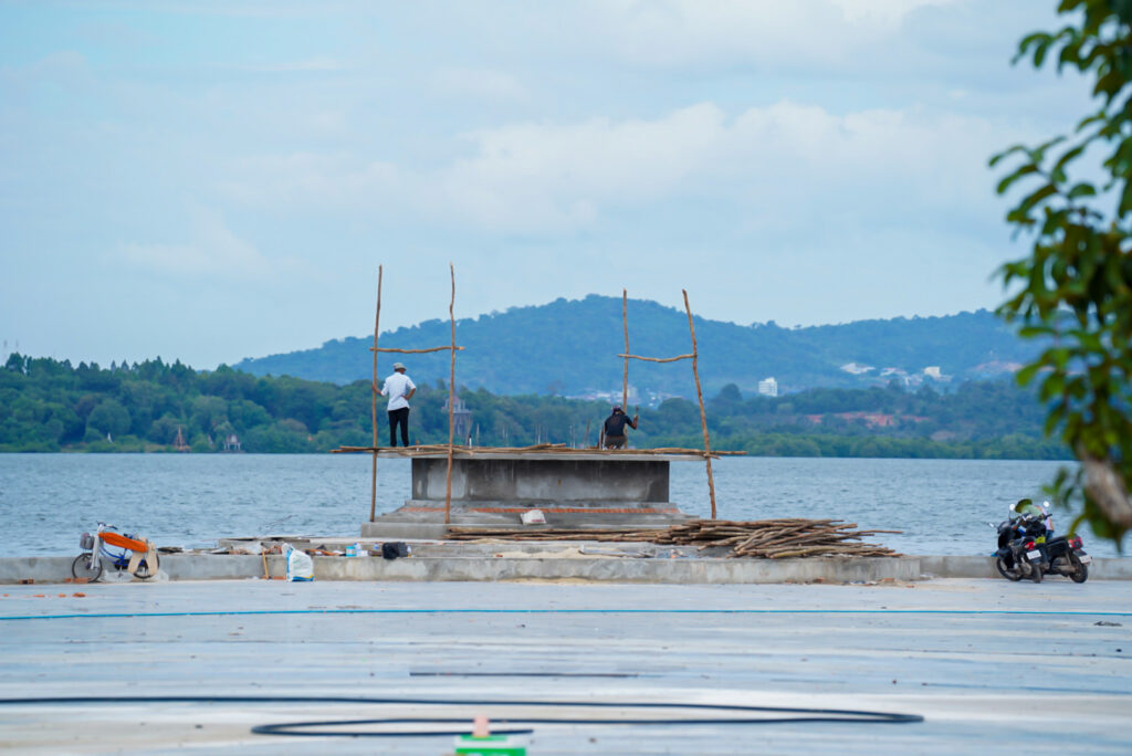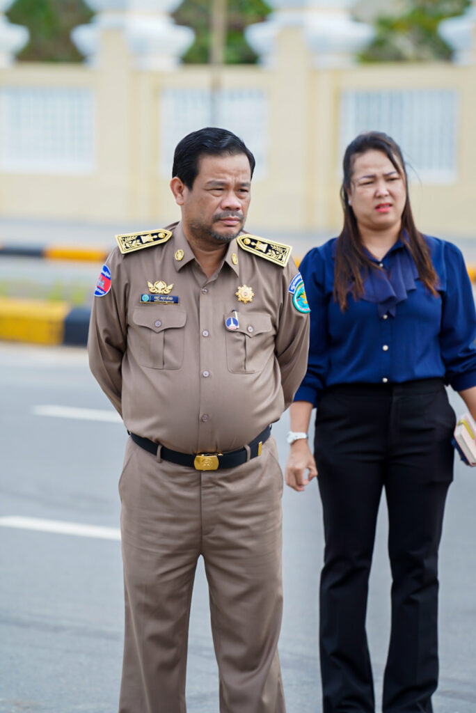 លោក ទៀ សុរៈឆ័យ អភិបាលស្ដីទីខេត្ដកោះកុង អមដំណើរដោយលោកស្រី អ៉ី នារីនេត អភិបាលរង នៃគណៈអភិបាលខេត្ត បានដឹកនាំក្រុមការងារ ចុះពិនិត្យមើលដំណើរការ នៃការសាងសង់សួនច្បារ នៅមុខសាលាខេត្តកោះកុង។