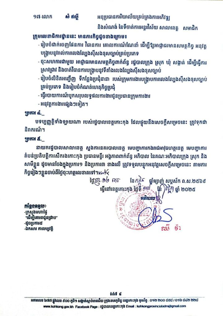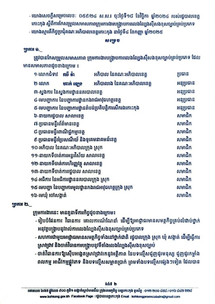 សេចក្តីសម្រេច ស្តីពីការកែសម្រួលសមាសភាពក្រុមការងារបង្ក្រាបការលេងល្បែងស៊ីសងខុសច្បាប់គ្រប់ប្រភេទ
