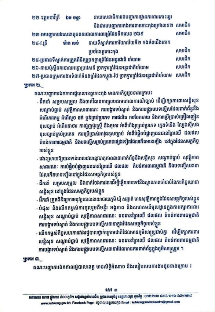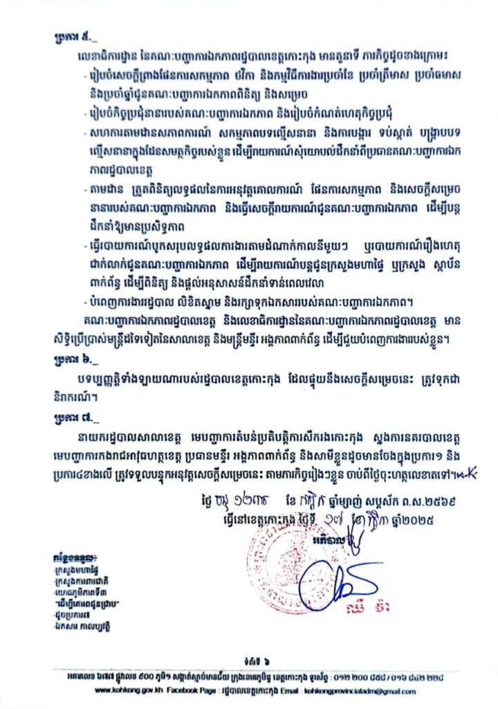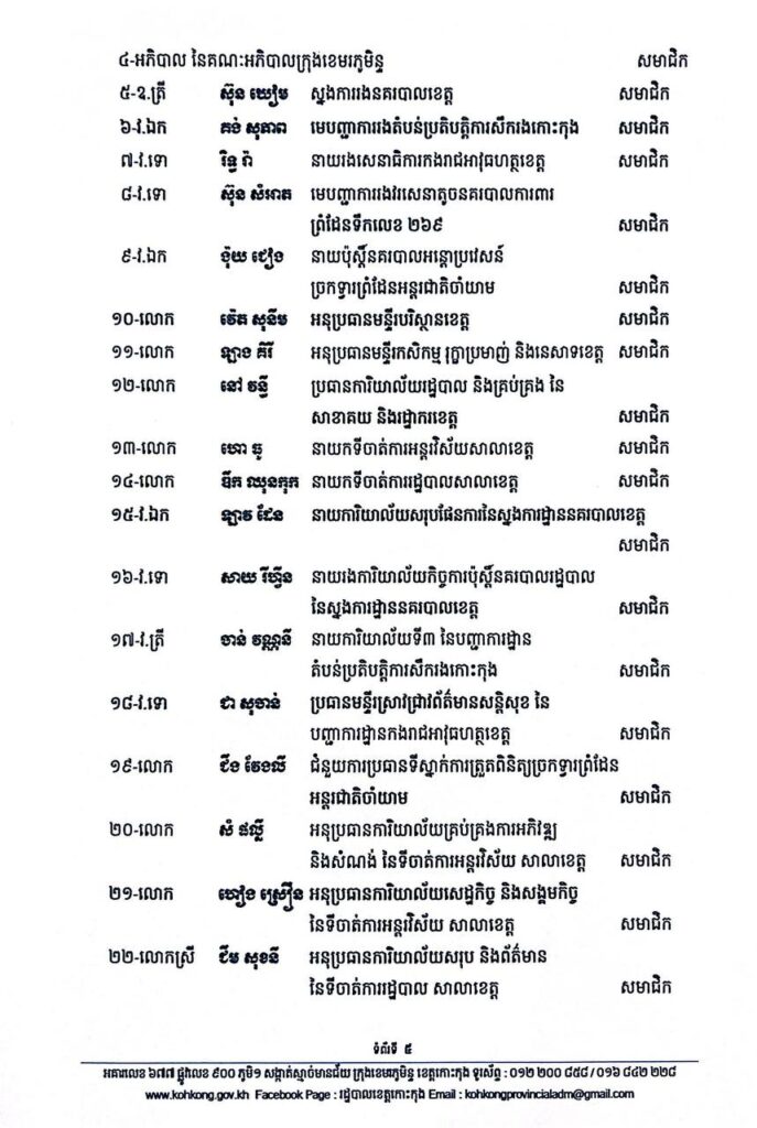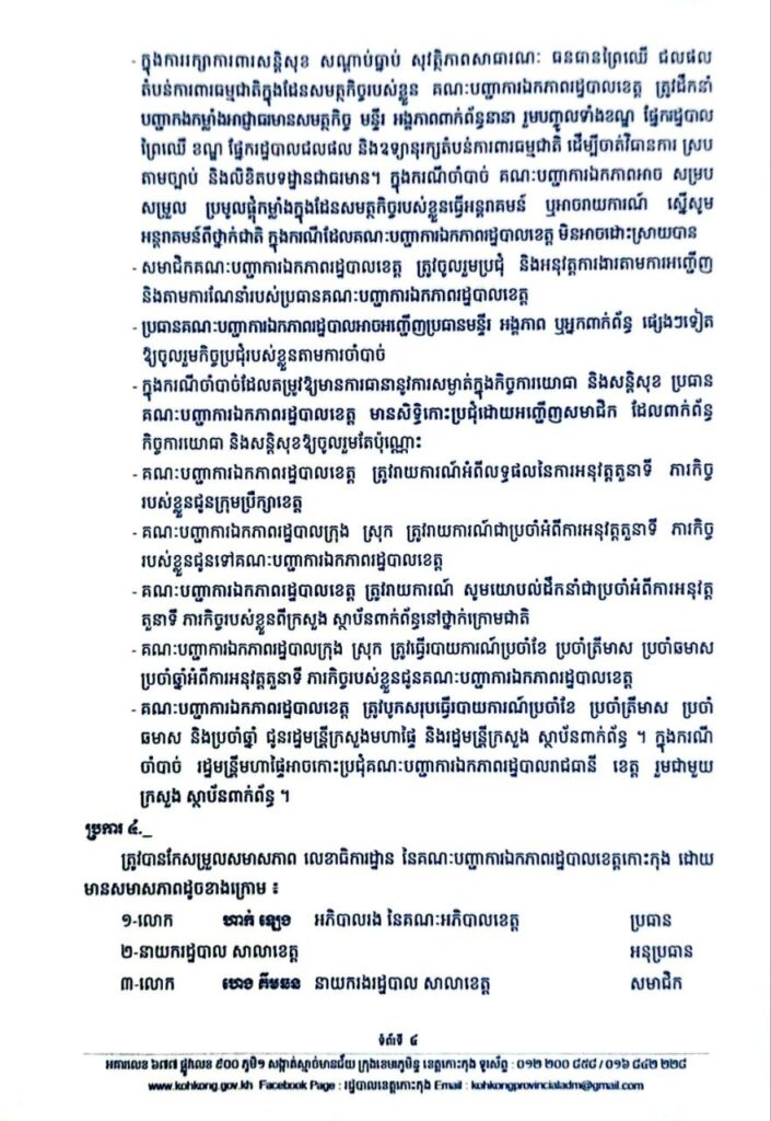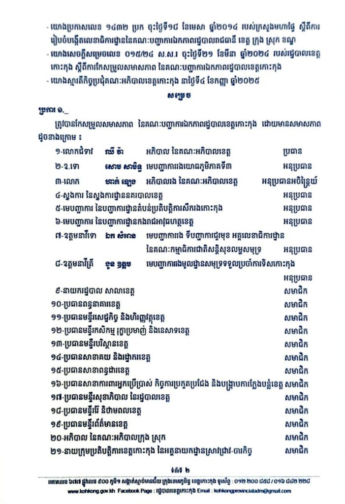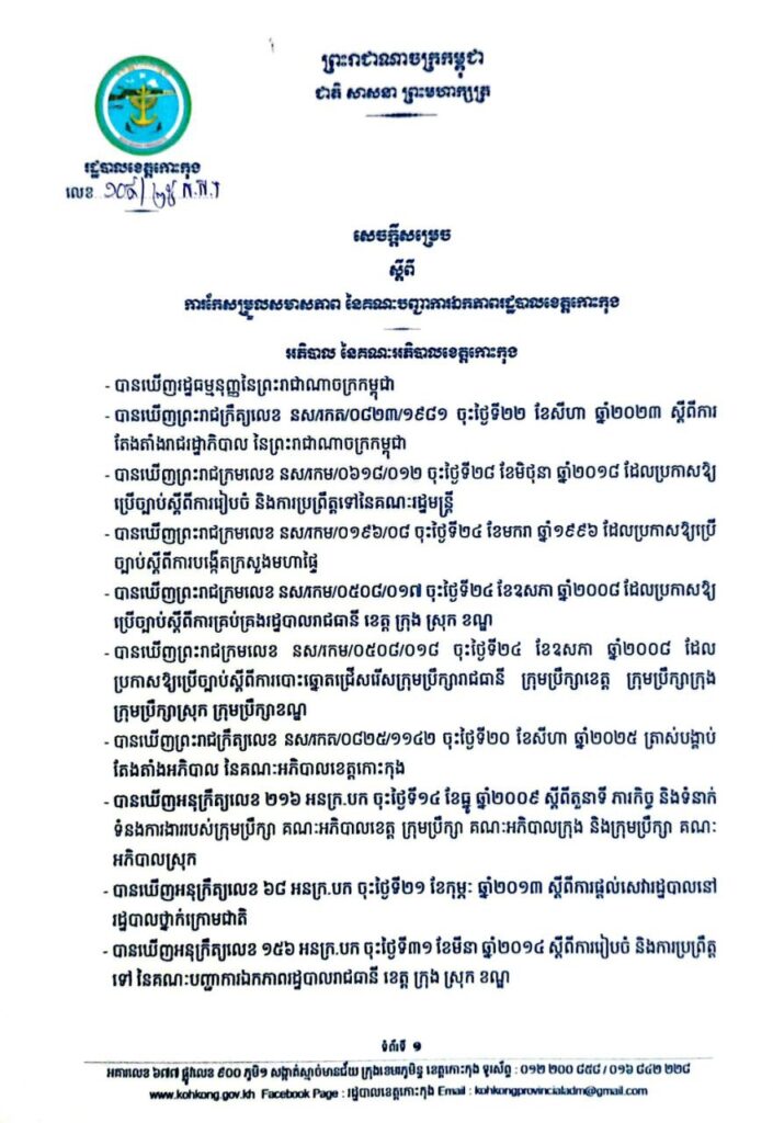 សេចក្តីសម្រេច ស្តីពីការកែសម្រួលសមាសភាព នៃគណៈបញ្ជាការឯកភាពរដ្ឋបាលខេត្តកោះកុង