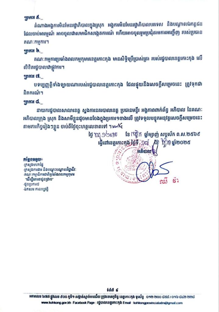 សេចក្តីសម្រេច ស្តីពីការកែសម្រួលសមាសភាពគណៈកម្មការប្រឆាំងពលកម្មកុមារខេត្តកោះកុង