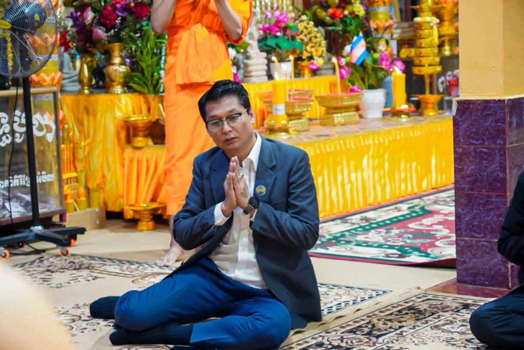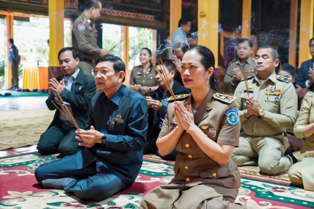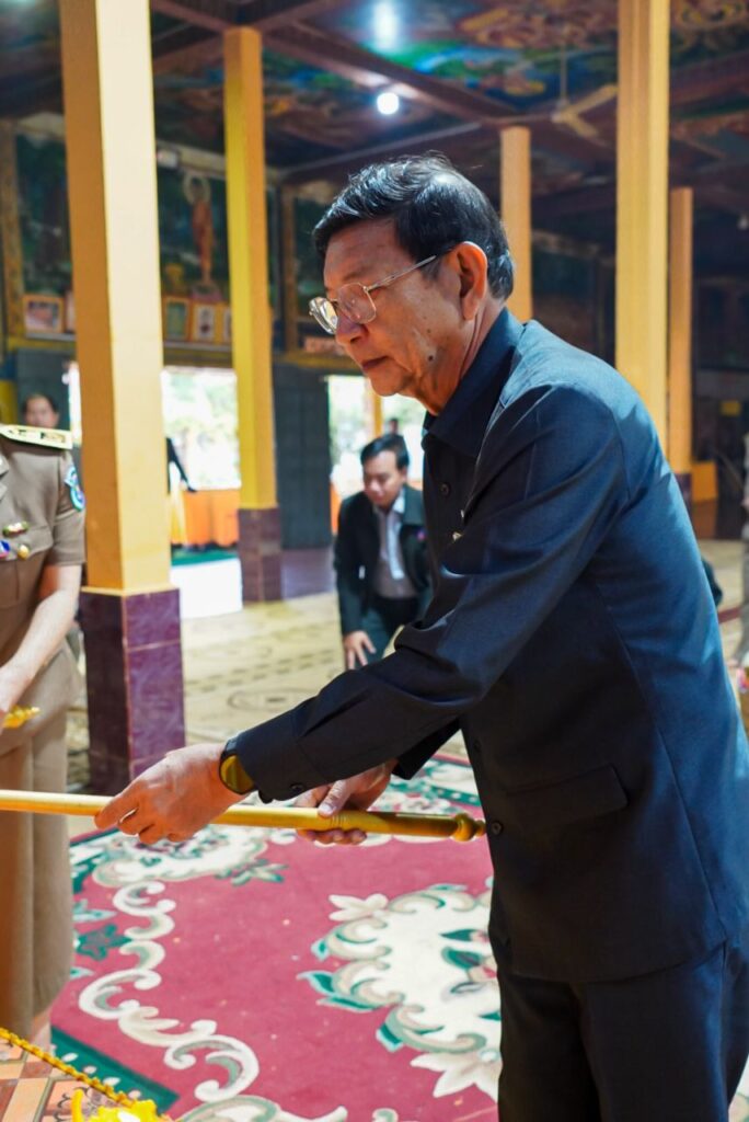 ឯកឧត្តម ថុង ណារុង ប្រធានក្រុមប្រឹក្សាខេត្តកោះកុង និងលោកជំទាវ ឈី វ៉ា អភិបាល នៃគណៈអភិបាលខេត្ត បានអញ្ជើញថ្វាយបង្គំ ប្រគេនទេយ្យទាន និងចតុបច្ច័យដល់ព្រះព្រហ្មសីល ហួត សាវិន ព្រះរាជាគណៈថ្នាក់កិត្តិយស ព្រះអនុគណស្រុកស្រែអំបិល ក្នុងឱកាសដែលឯកឧត្តម លោកជំទាវអញ្ជើញជាអធិបតី ក្នុងវេទិកាសាធារណៈរបស់ក្រុមប្រឹក្សាខេត្ត នៅស្រុកស្រែអំបិល។