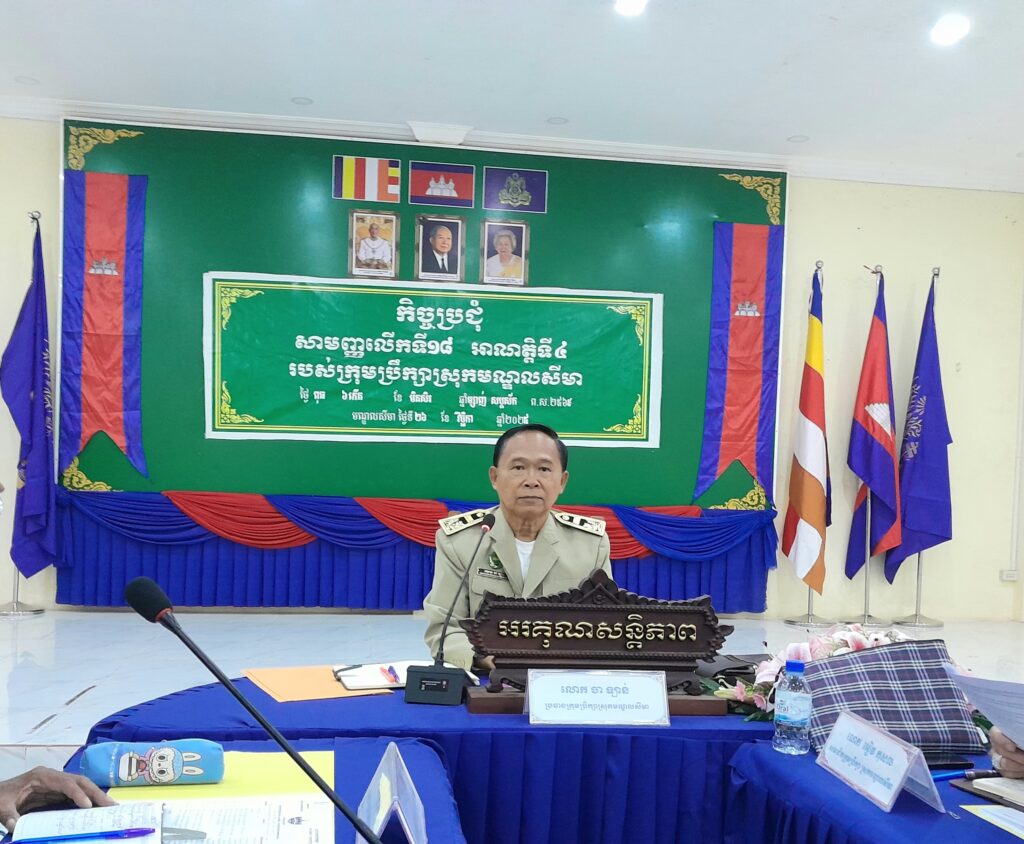 លោក ចា ឡាន់ ប្រធានក្រុមប្រឹក្សាស្រុក បានដឹកនាំកិច្ចប្រជុំសាមញ្ញលើកទី១៨ អាណត្តិទី៤ របស់ក្រុមប្រឹក្សាស្រុកមណ្ឌលសីមា ដោយមានរបៀបវារៈរួមមាន៖