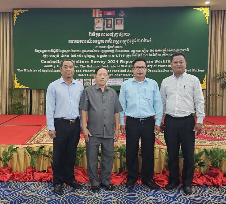 លោក ជា ស៊ីវត្រា ប្រធានមន្ទីរផែនការខេត្តកោះកុង អញ្ជើញចូលរួមក្នុងពិធីប្រកាសផ្សព្វផ្សាយរបាយការណ៍លទ្ធផលអង្កេតកសិកម្ម ឆ្នាំ២០២៤ រៀបចំដោយ វិទ្យាស្ថានជាតិស្ថិតិនៃក្រសួងផែនការ សហការជាមួយក្រសួងកសិកម្ម រុក្ខាប្រមាញ់ និងនេសាទ និងអង្គការស្បៀង និងកសិកម្មនៃសហប្រជាជាតិប្រចាំកម្ពុជា(FAO) ក្រោមអធិបតីភាពដ៏ខ្ពង់ខ្ពស់ ឯកឧត្តម ប៊ិន ត្រឈៃ រដ្ឋមន្ត្រីក្រសួងផែនការ ដោយមានការអញ្ជើញចូលរួមពីឯកឧត្តម រិន វីរៈ រដ្ឋលេខាធិការក្រសួងផែនការ និងជាប្រធានក្រុមប្រឹក្សាភិបាល វិទ្យាស្ថានជាតិស្ថិតិ លោកស្រី Rebekah Bell នាយិការអង្គការស្បៀង និងកសិកម្មនៃសហប្រជាជាតិ (FAO) ប្រចាំកម្ពុជា ឯកឧត្តម លោកជំទាវ លោក លោកស្រី តំណាងក្រសួង ស្ថាប័ន ដៃគូអភិវឌ្ឍ ភ្ញៀវជាតិ និងអន្តរជាតិ នៅសណ្ឋាគារកាំបូឌីយ៉ាណា។ ពិធីប្រកាសផ្សព្វផ្សាយនេះរៀបចំឡើងក្នុងគោលបំណងដើម្បីដាក់ឱ្យប្រើប្រាស់ជាផ្លូវការនូវរបាយការណ៍លទ្ធផលអង្កេតកសិកម្មកម្ពុជាឆ្នាំ២០២៤ ដល់ក្រសួងស្ថាប័នពាក់ព័ន្ធ អង្គការជាតិ អន្តរជាតិ និងអ្នកប្រើប្រាស់ផ្សេងទៀតសម្រាប់រៀបចំគោលនយោបាយអភិវឌ្ឍន៍វិស័យកសិកម្ម និងគោលដៅអភិវឌ្ឍន៍ប្រកបដោយចីរភាពរបស់រាជរដ្ឋាភិបាលកម្ពុជា។