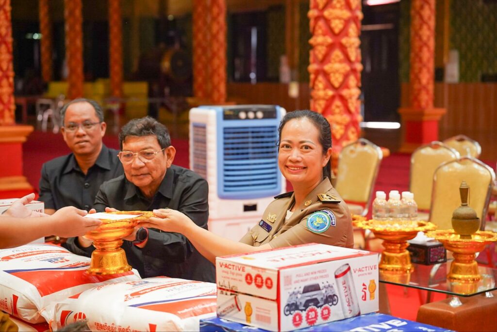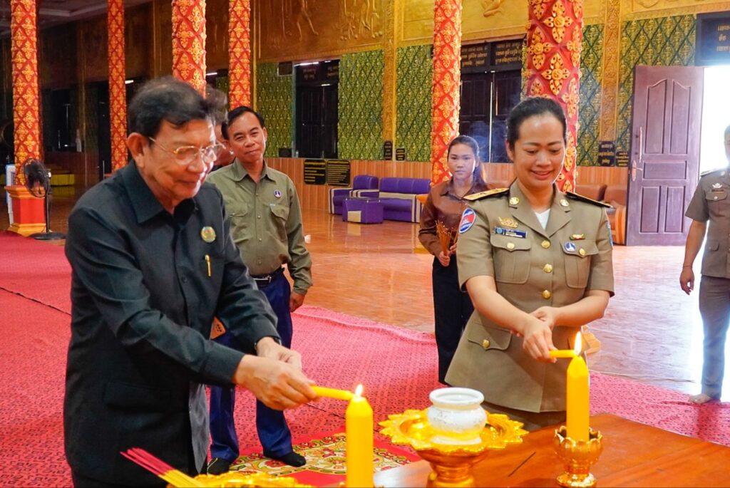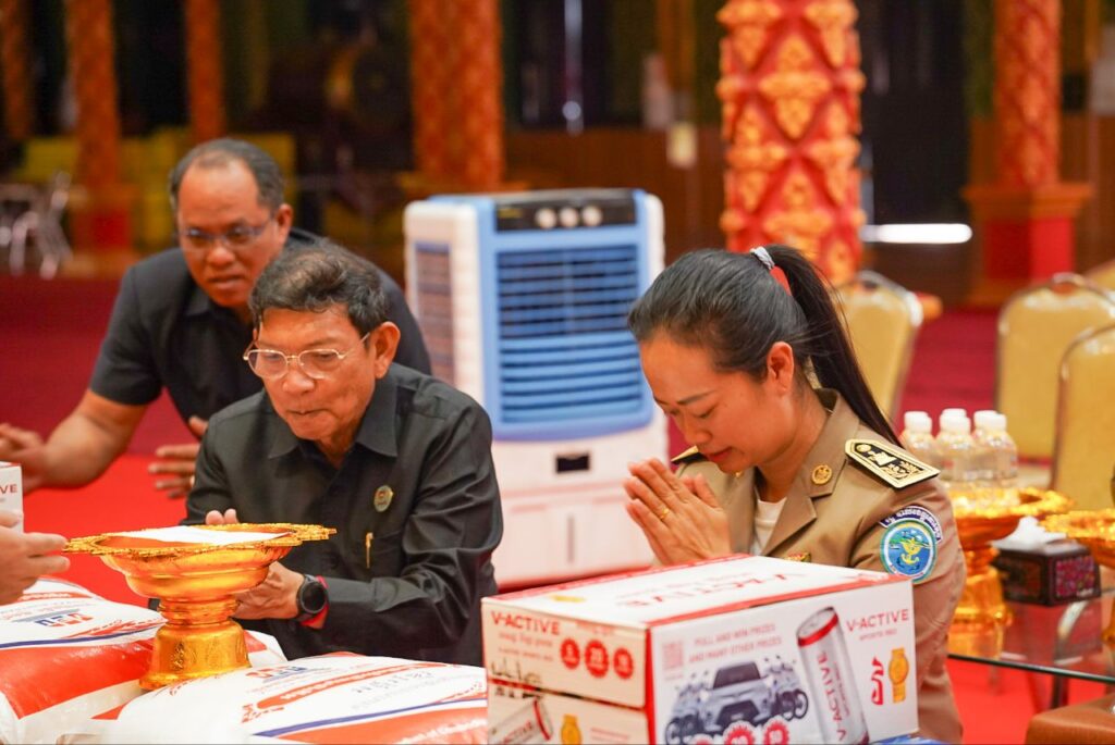 ឯកឧត្តម ថុង ណារុង ប្រធានក្រុមប្រឹក្សាខេត្តកោះកុង និងលោកជំទាវ ឈី វ៉ា អភិបាល នៃគណៈអភិបាលខេត្ត បានអញ្ជើញថ្វាយបង្គំ ប្រគេនទេយ្យទាន និងចតុបច្ច័យ ប្រគេនដល់ ព្រះលក្ខណ៍មុនី វង្ស ពិជ័យ ព្រះសមុទ្ធគង្គាមហាមុនីព្រះរាជាគណៈកិត្តិយស ព្រះមេគណខេត្ត នៃគណៈធម្មយុត្តិកនិកាយខេត្តកោះកុង និងជាព្រះចៅអធិការវត្តទេពនិមិត្ត ហៅវត្តថ្មី ក្នុងឱកាសដែលឯកឧត្តម លោកជំទាវអញ្ជើញ ជាអធិបតី ក្នុងវេទិកាសាធារណៈ របស់ក្រុមប្រឹក្សាខេត្ត នៅក្រុងខេមរភូមិន្ទ