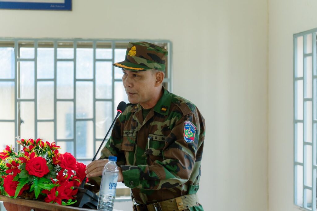 នាងខ្ញុំសូមទាញការចាប់អារម្មណ៍ថា ការងារហ្វឹកហ្វឺន គឺជាជ្រុងអាទិភាពមួយ នៃការកែទម្រង់ កងយោធពលខេមរភូមិន្ទ ដែលរាជរដ្ឋាភិបាលកម្ពុជាបានដាក់ចេញនូវផែនការកែទម្រង់កងយោធពលខេមរភូមិន្ទ សំដៅធ្វើទំនើបកម្ម និងបង្កើនសមត្ថភាពវិជ្ជាជីវៈកងទ័ព ដើម្បីធានាការពារប្រកបដោយ ប្រសិទ្ធភាពនូវឯករាជ្យ អធិបតេយ្យ បូរណភាពទឹកដី សន្តិភាព សន្តិសុខ សុវត្ថិភាព និងសណ្តាប់ធ្នាប់ សាធារណៈជូនប្រជាពលរដ្ឋ។ កងយោធពលខេមរភូមិន្ទជាបណ្តើរៗ បានធ្វើការអភិវឌ្ឍធនធានមនុស្ស តាមរយៈការបណ្តុះបណ្តាលយោធិនអាជីព និងការបង្កើនគុណភាពហ្វឹកហ្វឺន បំប៉នជំនាញឯកទេស ដូច្នេះតាមយៈ ស្របតាមស្ថានភាពនិងតម្រូវការនៃសំណូមពរភារកិច្ចចំពោះមុខរបស់អង្គភាពនីមួយៗ។ ការបើកវគ្គហ្វឹកហ្វឺនរយៈពេល ៣ខែ នៅបញ្ជាការដ្ឋានការពារកោះឆ្នេររស្រែខ្លុង ខាងមុខនេះ ពិតជាបានផ្តល់ឱកាសដល់ពលទាហានថ្មី ក្នុងការកសាងពង្រឹងសមត្ថភាពរបស់ខ្លួនដើម្បីក្លាយទៅជាធនធាន មនុស្សពិតប្រាកដ ចូលរួមចំណែកក្នុងការការពារព្រំដែន និងការពារបូរណភាពទឹកដី ព្រមទាំងអភិវឌ្ឍ ប្រទេសជាតិឱ្យកាន់តែមានភាពរឹងមាំ និងរីកចម្រើនបន្ថែមទៀត។