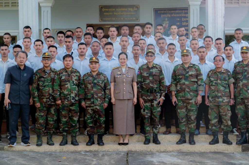 នាងខ្ញុំសូមចូលរួមអបអរសាទរចំពោះ ពលទាហានថ្មីទាំង៦១រូប របស់យើង ដែលត្រូវបាន សម្រេចជ្រើសរើសជាពលទាហានបំពេញក្របខ័ណ្ឌឱ្យបញ្ជាការដ្ឋានកងទ័ពជើងគោកក្នុងឆ្នាំ២០២៥ នេះ និងសូមផ្តាំផ្ញើដល់ពលទាហានថ្មីទាំង៦១រូប ត្រូវប្រឹងប្រែងយកចិត្តទុកដាក់ហ្វឹកហ្វឺន រៀនសូត្រឱ្យបានល្អប្រសើរ និងត្រូវក្តាប់ឱ្យជាប់រាល់មេរៀនដែលគ្រូឧទ្ទេសនាម និងត្រូវប្រកាន់ភ្ជាប់តួនាទីភារកិច្ចរបស់ខ្លួន ហើយត្រូវខិតខំរៀនសូត្រ ដើម្បីបង្កើនសមត្ថភាព ចំណេះដឹង ចំណេះធ្វើពិតប្រាកដ សំដៅរួម ចំណែកពង្រឹងខឿនការពារជាតិបានរឹងមាំ ហើយនាងខ្ញុំសង្ឃឹមថា នៅពេលបញ្ចប់វគ្គហ្វឹកហ្វឺន ពល ទាហានរបស់យើងនឹងទទួលបានលទ្ធផលល្អប្រសើរ ហើយមានឆន្ទៈមោះមុត ស្មោះត្រង់ដាច់ខាត ចំពោះ ជាតិ សាសនា ព្រះមហាក្សត្រ៕