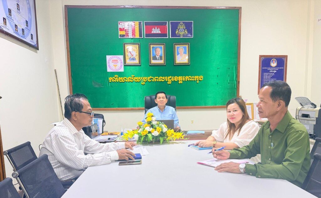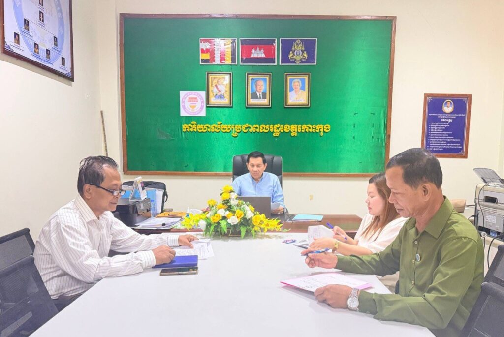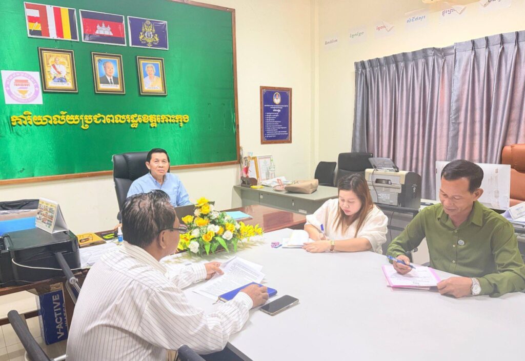 លោក សៅ សុគន្ធវារី ប្រធានការិយាល័យប្រជាពលរដ្ឋខេត្តកោះកុង បានអញ្ជើញដឹកនាំកិច្ចប្រជុំជាមួយមន្ត្រីផ្នែកទាំងពីរ ដើម្បីត្រួតពិនិត្យវឌ្ឍនភាពការងារប្រចាំខែវិច្ឆិកា ឆ្នាំ២០២៥ របស់ការិយាល័យប្រជាពលរដ្ឋ ដែលមានរបៀបវារៈចំនួន ៥ ដូចខាងក្រោម៖