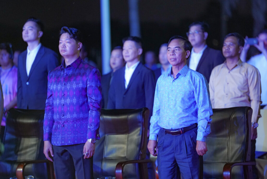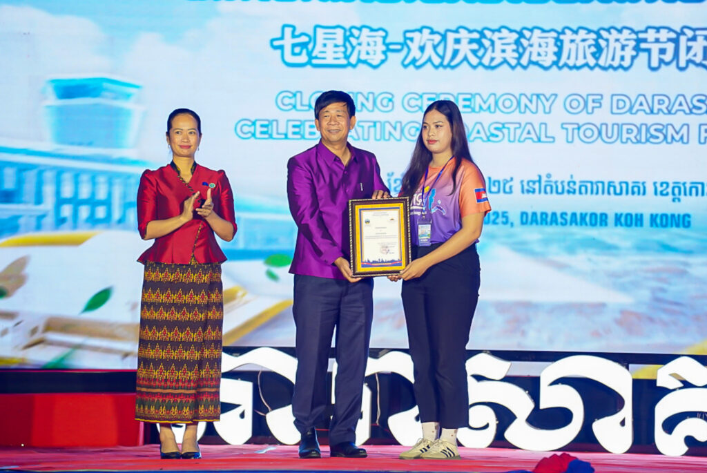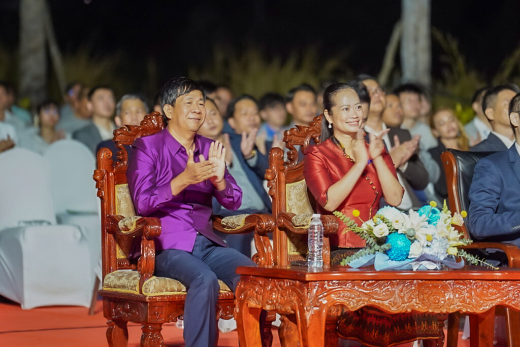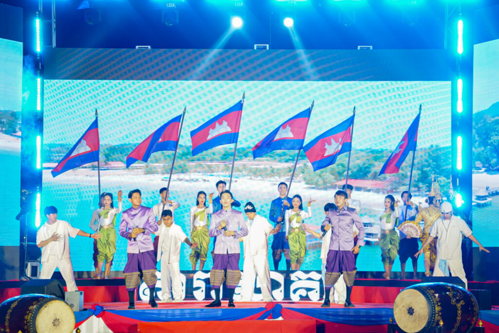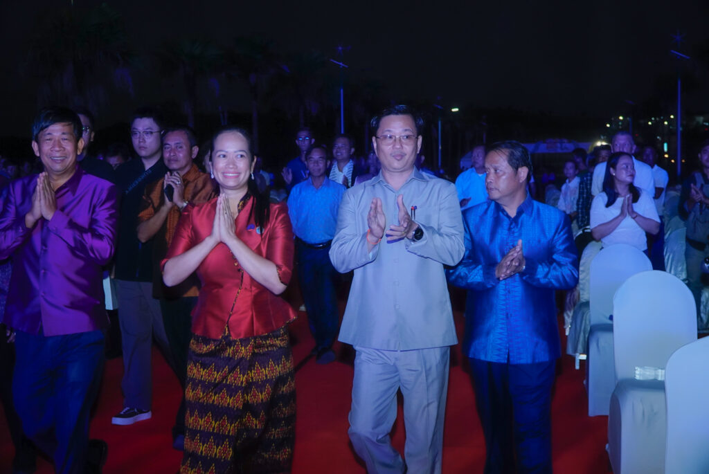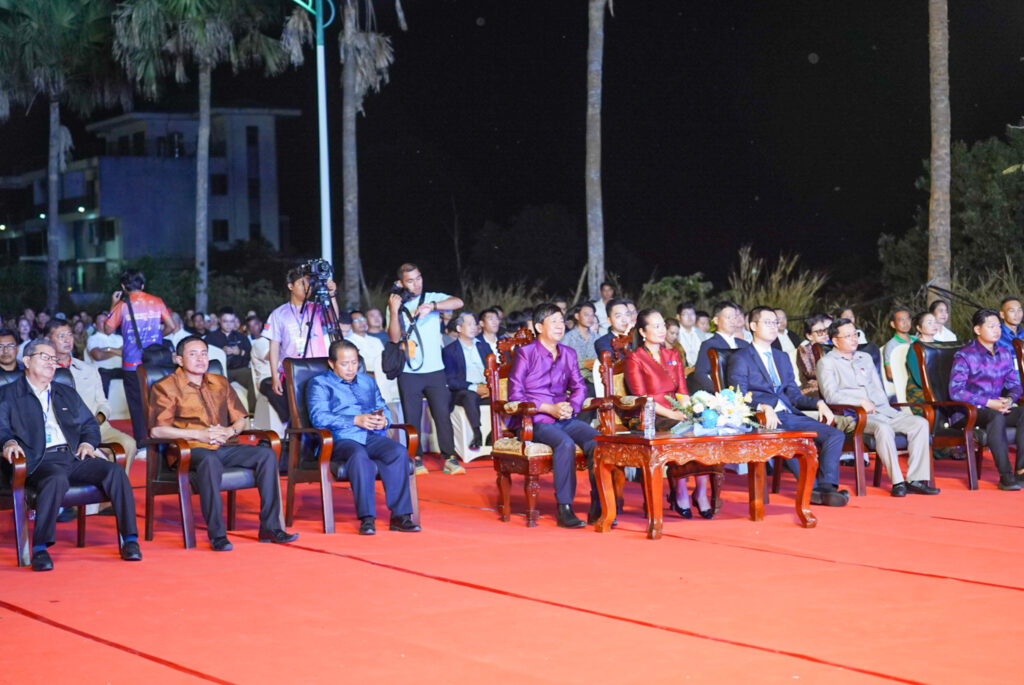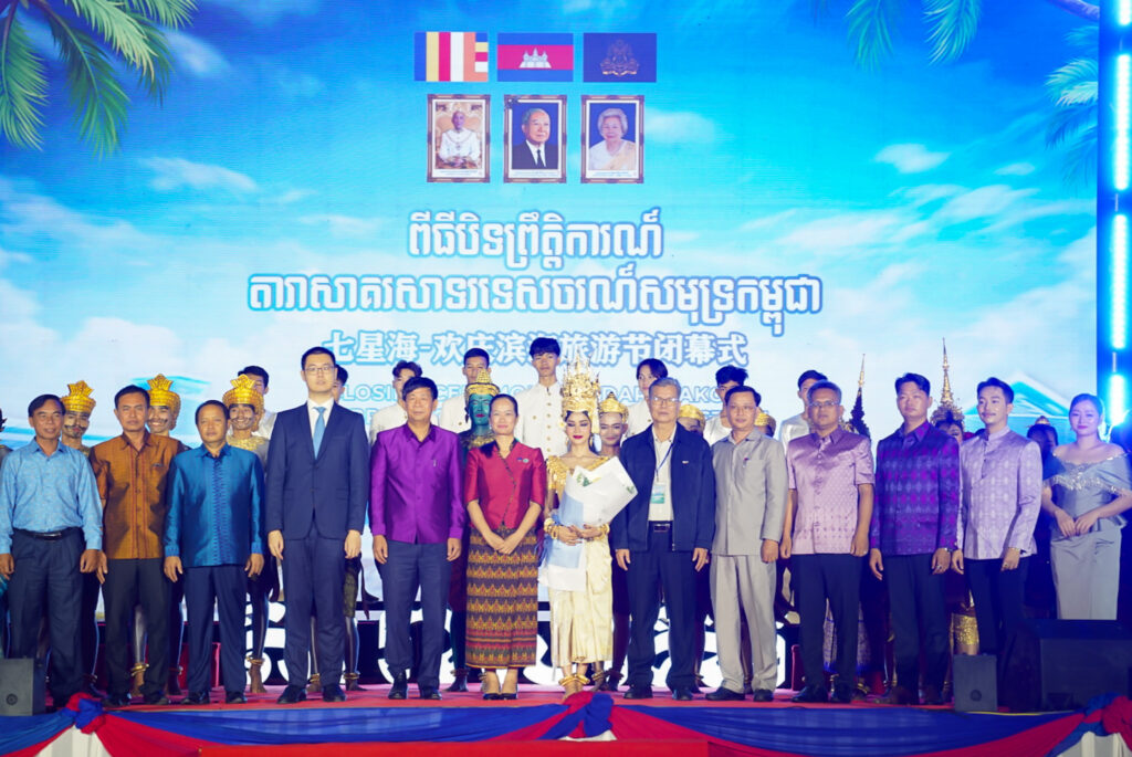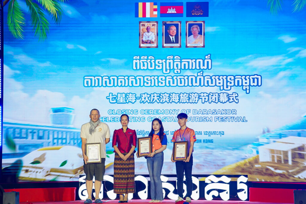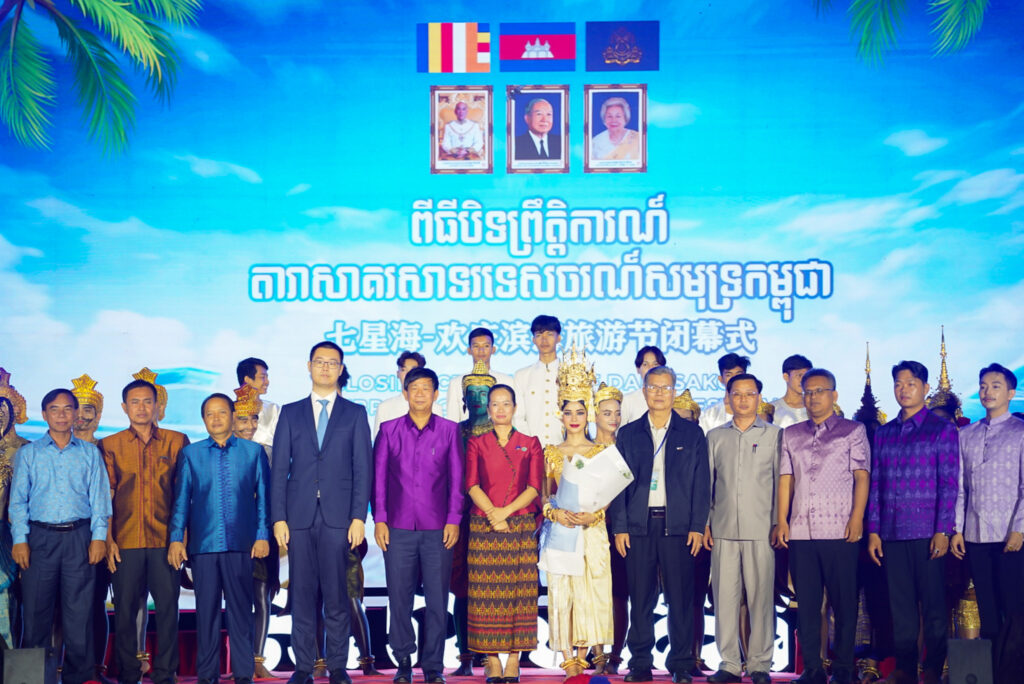 លោកជំទាវ ឈី វ៉ា អភិបាល នៃគណៈអភិបាលខេត្តកោះកុង បានអញ្ជើញស្វាគមន៍ឯកឧត្តម វ៉ាហេង ដាវុធ រដ្ឋលេខាធិការ តំណាងដ៏ខ្ពង់ខ្ពស់ ឯកឧត្តម ហួត ហាក់ រដ្ឋមន្ត្រីក្រសួងទេសចរណ៍ ក្នុងពិធីបិទព្រឹត្តិការណ៍ “តារាសាគរ សាទរទេសចរណ៍សមុទ្រ” របស់ក្រុមហ៊ុន Coastal City Development Group Co., Ltd.