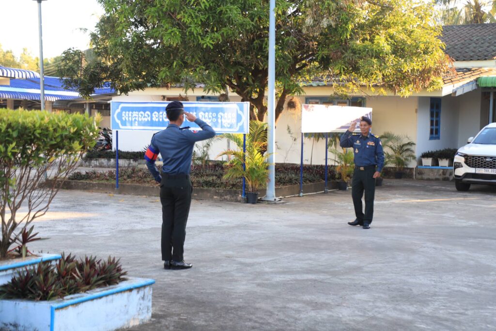 នៅបញ្ជាការដ្ឋានកងរាជអាវុធហត្ថខេត្តកោះកុង លោកវរសេនីយ៍ឯក មាស សាលាស់ មេបញ្ជាការរងកងរាជអាវុធហត្ថខេត្តកោះកុង បានដឹកនាំនាយទាហាន នាយទាហានរង នៃកងរាជអាវុធហត្ថ ចូលរួមគោរពទង់ជាតិ