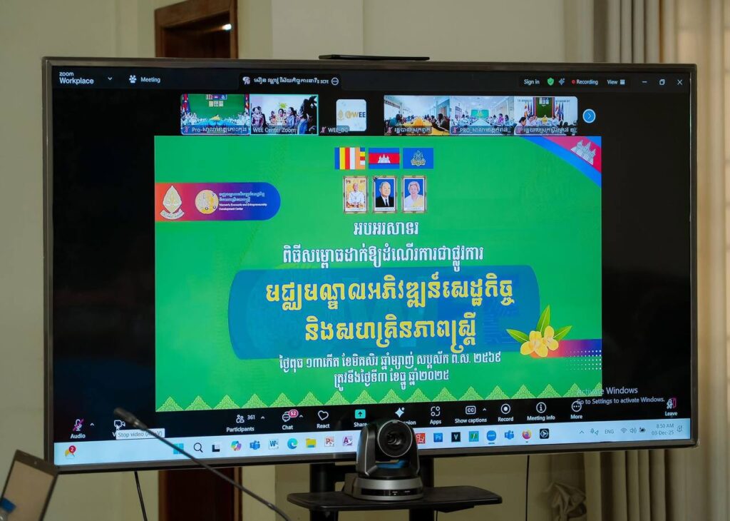 កោះកុង ព្រឹកថ្ងៃពុធ ១៣កើត ខែមិគសិរ ឆ្នាំម្សាញ់ សប្តស័ក ពុទ្ធសករាជ ២៥៦៩ ត្រូវនឹងថ្ងៃទី៣ ខែធ្នូ ឆ្នាំ២០២៥ លោក គង់ សំរិទ្ធ ប្រធានមន្ទីរសង្គមកិច្ច អតីតយុទ្ធជន និងយុវនីតិសម្បទាខេត្តកោះកុង បានចាត់លោកស្រី ស៊ឹម សុខជា អនុប្រធានមន្ទីរ ចូលរួមពិធីសម្ពោធនិងដាក់ឱ្យដំណើរការជាផ្លូវការ “មជ្ឈមណ្ឌលអភិវឌ្ឍន៍សេដ្ឋកិច្ច និងសហគ្រិនភាពស្ត្រី” ក្រោមអធិបតីភាពដ៏ខ្ពង់ខ្ពស់បំផុត លោកជំទាវបណ្ឌិត ពេជ ចន្ទមុន្នី ហ៊ុនម៉ាណែត នៅសាលប្រជុំ (ខ) សាលាខេត្តកោះកុង តាមរយ:ប្រព័ន្ធអនឡាញ ។