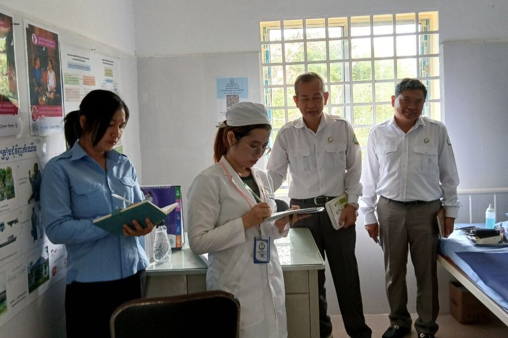 លោកស្រីឱសថការី ឌិត គឹមមាន ប្រធានការិយាល័យសុខាភិបាលស្រុកប្រតិបត្តិស្មាច់មានជ័យ បានដឹកនាំមន្រ្ដីពាក់ព័ន្ធក្រោមឱវាទចូលរួមអមដំណើរ ឯកឧត្ដមសាស្រ្តាចារ្យរង ហេង ប៊ុនគៀត រដ្ឋលេខាធិការក្រសួងសុខាភិបាល ឯកឧត្ដមវេជ្ជបណ្ឌិត ពាស់ មូស្លីម អនុរដ្ឋលេខាធិការក្រសួងសុខាភិបាល លោកវេជ្ជបណ្ឌិត ឃូ អ៊ាងអ៊ូ អនុប្រធាននាយកដ្ឋានផែនការព័ត៌មាន និងលោក ស៊្រន សៀវប៉ាវ មន្រ្ដីជំនួយការ បានអញ្ជើញចុះពិនិត្យស្ថានភាពមណ្ឌលសុខភាព និងប៉ុស្ដិ៍សុខភាព ចំនួន០៣ នៃការិយាល័យសុខាភិបាលស្រុកប្រតិបត្តិស្មាច់មានជ័យ។