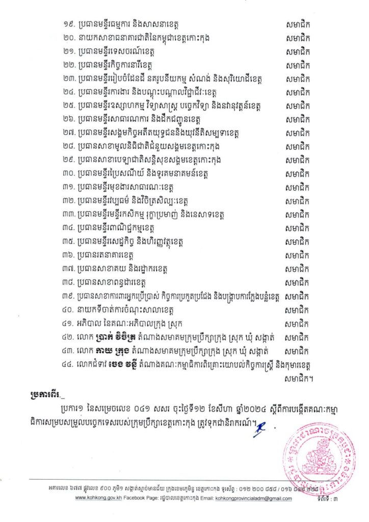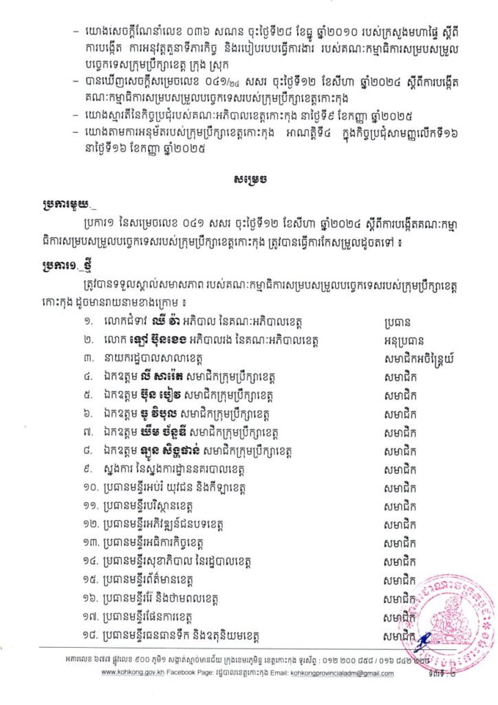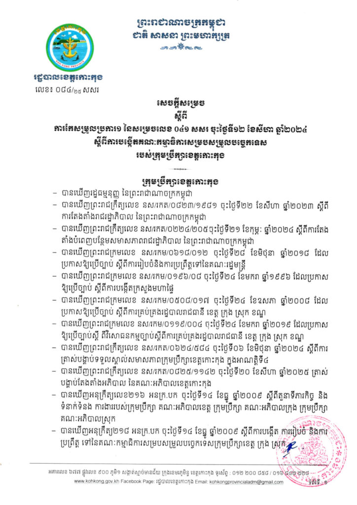 សេចក្ដីសម្រេចលេខ ០៨៤ ស្ដីពីការកែសម្រួលប្រការ១ នៃគណៈកម្មាធិការសម្របសម្រួលបច្ចេកទេសរបស់ក្រុមប្រឹក្សាខេត្ត