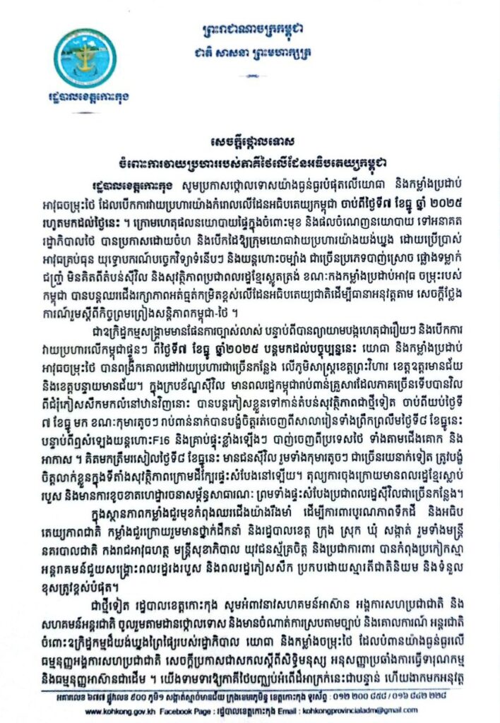 សេចក្តីថ្កោលទោស ចំពោះការវាយប្រហាររបស់ភាគីថៃ លើដែនអធិបតេយ្យកម្ពុជា