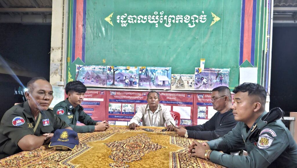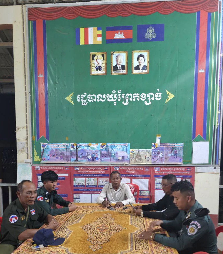 ដោយមានការណែនាំពីរដ្ឋបាលស្រុក លោក រៀម រុំ មេឃុំព្រែកខ្សាច់ បានចាត់ លោក ចាប វន ជំទប់ ទី១ឃុំ បានដឹកនាំកម្លាំងប៉ុស្តិ៍ ប្រជាការពារនិងក្រុមការងារយាមប្រចាំការនៅសាលាឃុំព្រែកខ្សាច់ ដើម្បីក្ដាប់ពត៌មាន សភាពការណ៍ពីបញ្ហាបន្ទាត់ព្រំដែន និងបញ្ហាផ្សេងៗតាមបណ្ដាភូមិ ក្នុងឃុំព្រែកខ្សាច់ ស្រុកគិរីសាគរខេត្តកោះកុង។