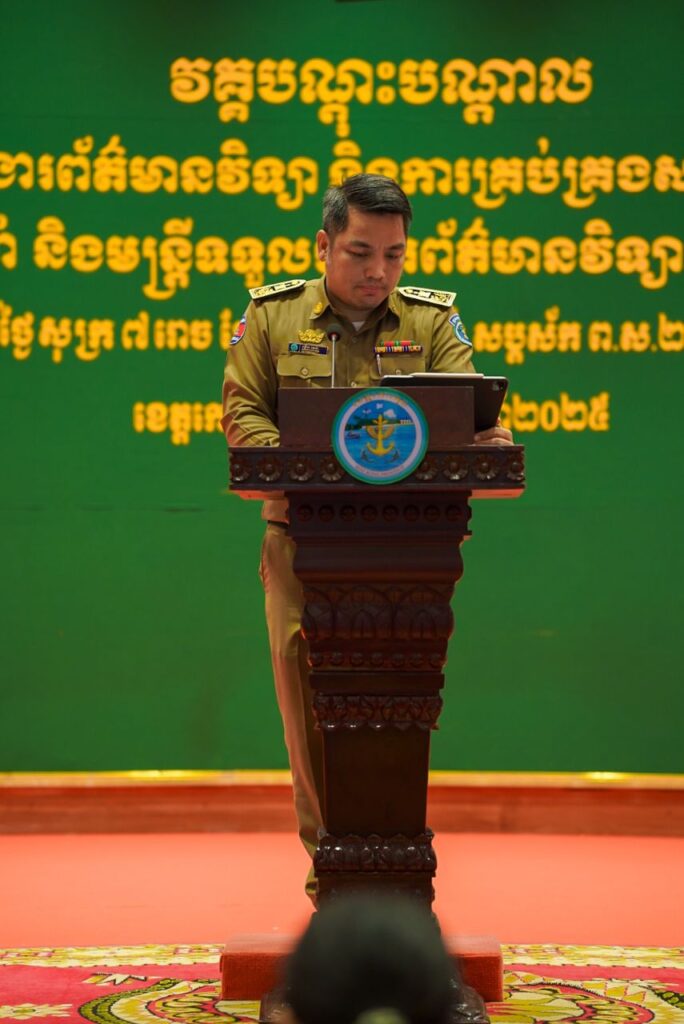 លោក លោកស្រីទាំងអស់ ពិតជាបានដឹងយ៉ាងច្បាស់ណាស់ថា រាជរដ្ឋាភិបាលកម្ពុជា បានយកចិត្តទុកដាក់ខ្ពស់ ជាមួយវិស័យព័ត៌មានវិទ្យា បណ្តាញសង្គម និងសារព័ត៌មាន ដែលនាំ ឱ្យយើងទាំងអស់គ្នា បានយល់ដឹងអំពីអ្វីទៅជា ព័ត៌មានពិត និងអ្វីទៅជា ព័ត៌មានក្លែងក្លាយ ខ្ញុំសូមគូសបញ្ជាក់ថា សព្វថ្ងៃព័ត៌មាន ដែលមិនពិតបងប្អូនយើងជាច្រើន បានទទួលលឿនបំផុត តែព័ត៌មានពិត ព័ត៌មានជាប្រយោជន៍ដល់សង្គម និងប្រទេសជាតិរបស់យើង មានការចែករំលែកតិចតួចនៅឡើយ។ ដើម្បីឱ្យ ព័ត៌មានពិត បានផ្តល់ទៅ ដល់សាធាណៈជន ខ្ញុំស្នើបងប្អូនទាំងអស់ ចូលរួមសហការ ឱ្យបានយ៉ាងជិតស្និទ្ធិ និងជាប្រចាំ ជាមួយក្រុមការងារព័ត៌មានវិទ្យាខេត្ត ត្រូវបន្តផ្សព្វផ្សាយ ចែករំលែកឱ្យបានរហ័ស និងទាន់ពេលវេលា ជាពិសេសជាប្រយោជន៍ សម្រាប់ខេត្តកោះកុង របស់យើងតែម្តង។