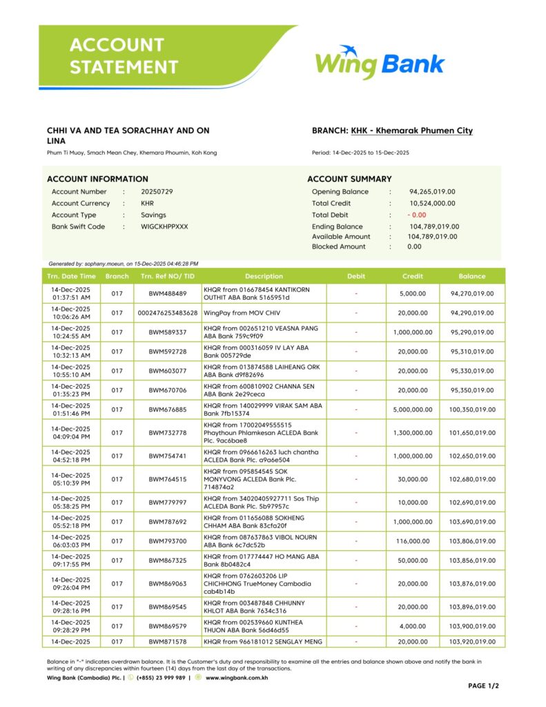 ថ្ងៃចន្ទ ១០រោច ខែមិគសិរ ឆ្នាំម្សាញ់ សប្តស័ក ពុទ្ធសករាជ ២៥៦៩ ត្រូវនឹងថ្ងៃទី១៥ ខែធ្នូ ឆ្នាំ២០២៥