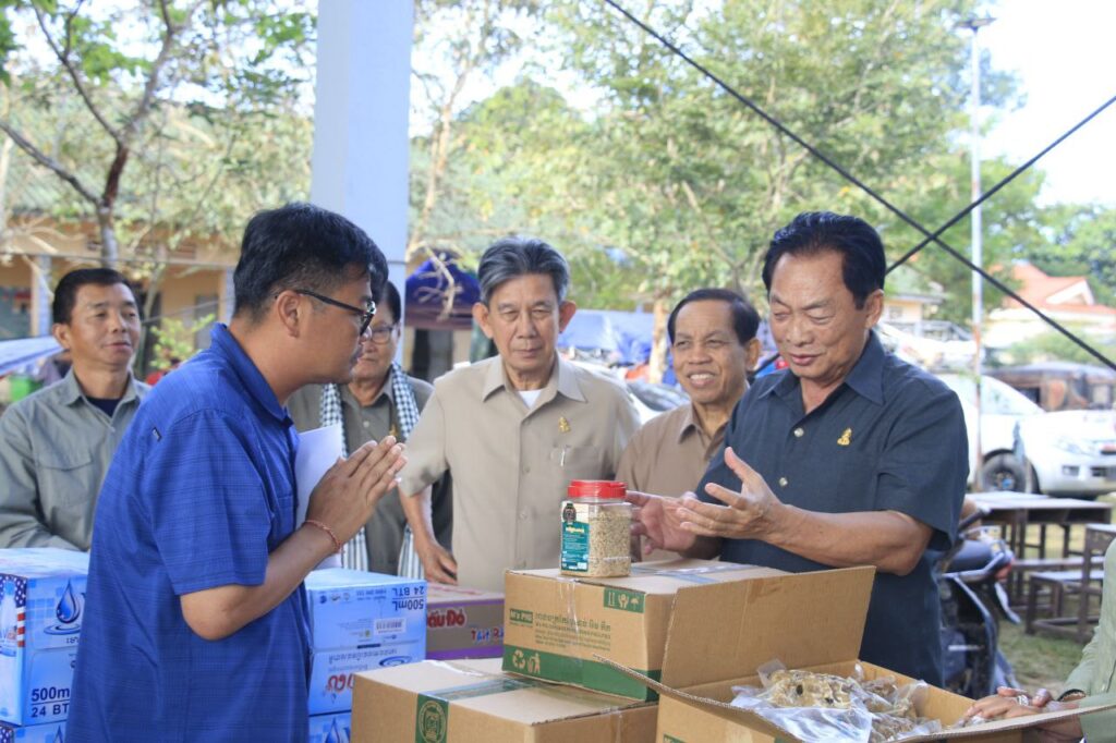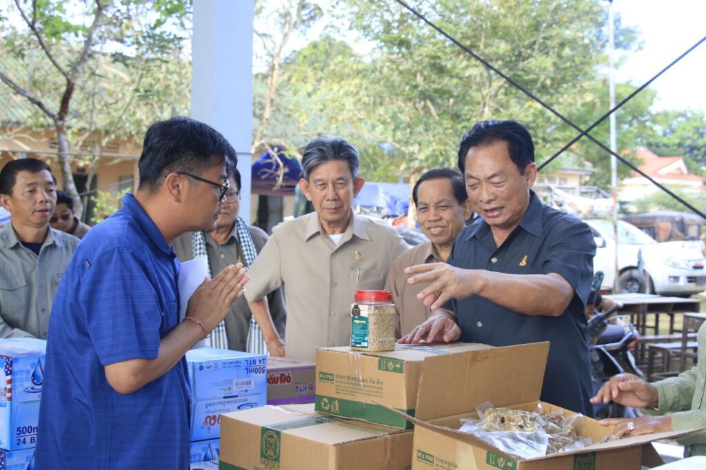 លោកជំទាវ ឈី វ៉ា អភិបាល នៃគណៈអភិបាលខេត្តកោះកុង បានអញ្ជើញស្វាគមន៍ឯកឧត្តមបណ្ឌិត ម៉ុង ឫទ្ធី ប្រធានក្រុមសមាជិកព្រឹទ្ធសភាប្រចាំភូមិភាគទី៧ និងលោកជំទាវ ម៉ែន ស៊ុន ម៉ុង ឫទ្ធី ឯកឧត្តម ឈិត សុខុន អនុប្រធានក្រុមសមាជិកព្រឹទ្ធសភាប្រចាំភូមិភាគទី៧ លោក លោកស្រី មន្រ្តីការិយាល័យភូមិភាគទី៧ អញ្ជើញចុះសួរសុខទុក្ខ និងចែកអំណោយប្រជាពលរដ្ឋដែលភៀសសឹក ស្នាក់នៅទីតាំងសុវត្ថិភាព នៅស្រុកបូទុមសាគរ ខេត្តកោះកុង។