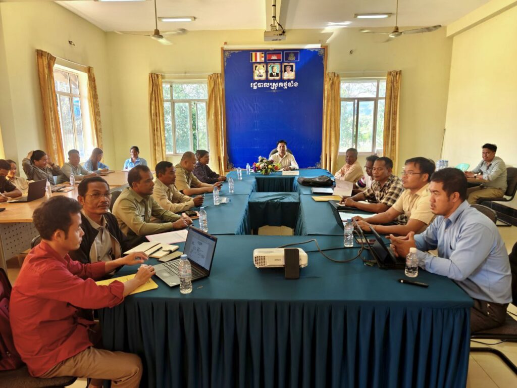 លោក សុខ វឿន មេឃុំជំនាប់ និងលោក ប៉ែន ខៀវបញ្ញា ស្មៀនឃុំ លោក ឡាយ វទ្ធី ជំនួយការហិរញ្ញវត្ថុឃុំជំនាប់ បានចូលរួមសម្រប់សម្រួលគម្រោងអាហាររូបត្ថមនៅកម្ពុជា សំរាប់ឆមាសទី២ ឆ្នាំ២០២៥ ក្រោមអធិបតីភាពលោក ឈឹន ភស្ដា អភិបាល នៃគណៈអភិបាលរងស្រុកថ្មបាំង នៅសាលាប្រជុំសាលាថ្មបាំង
