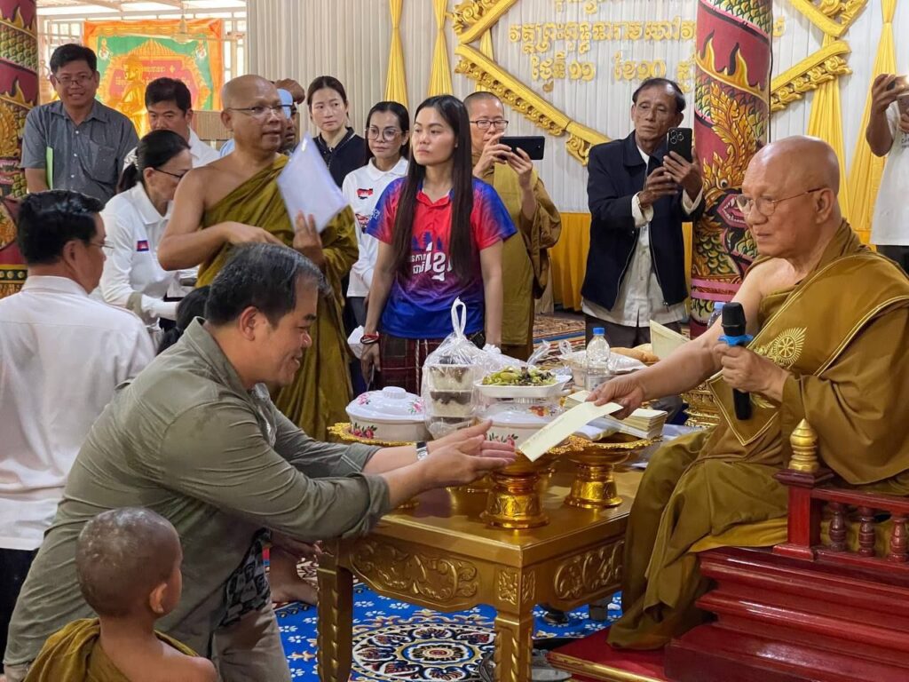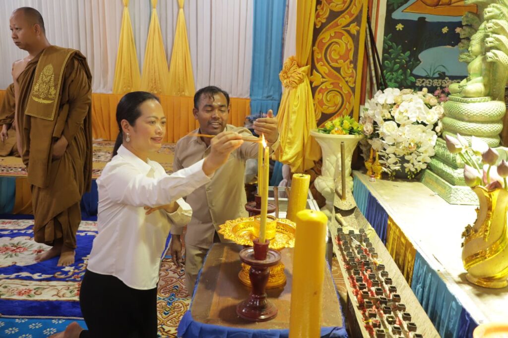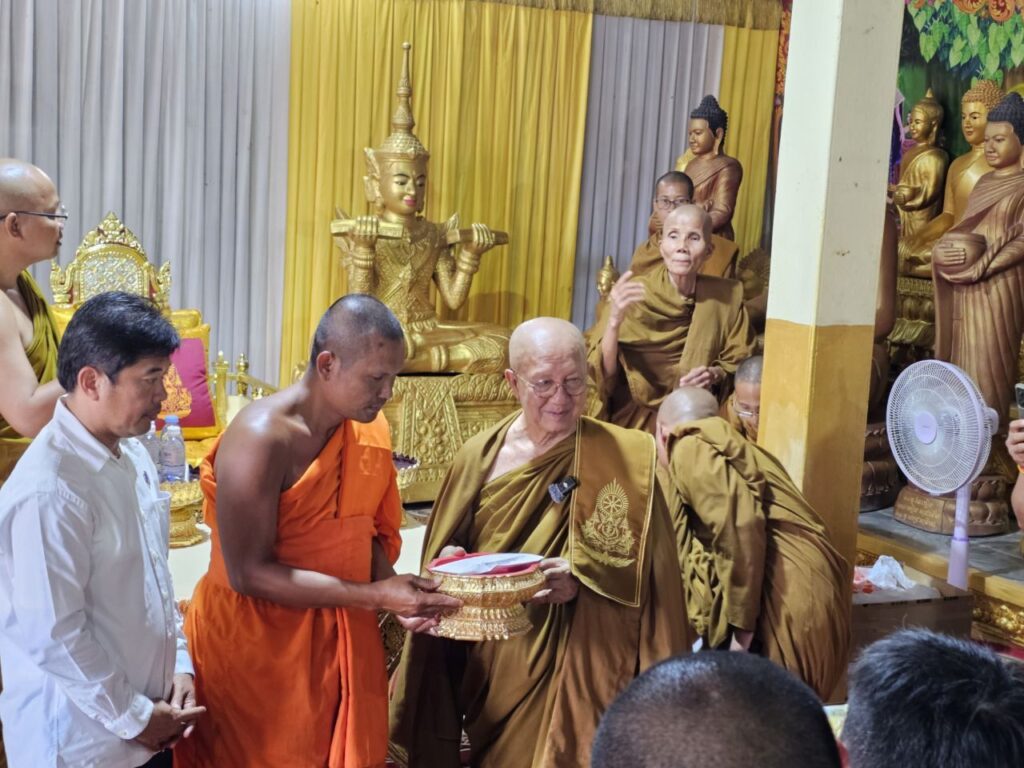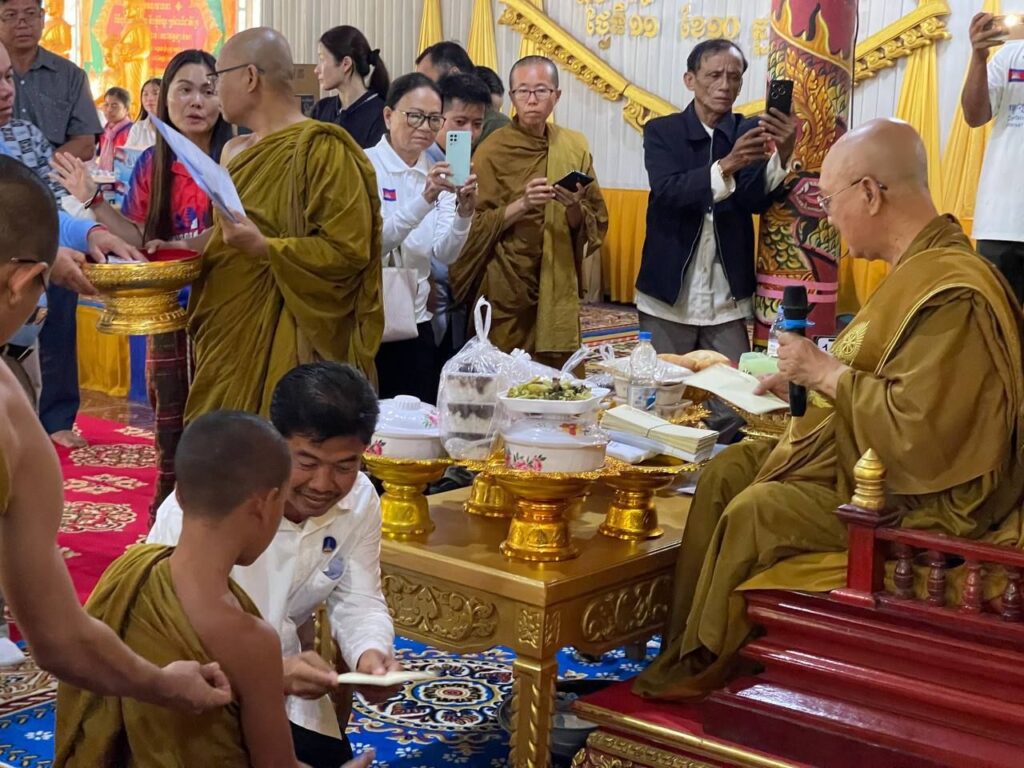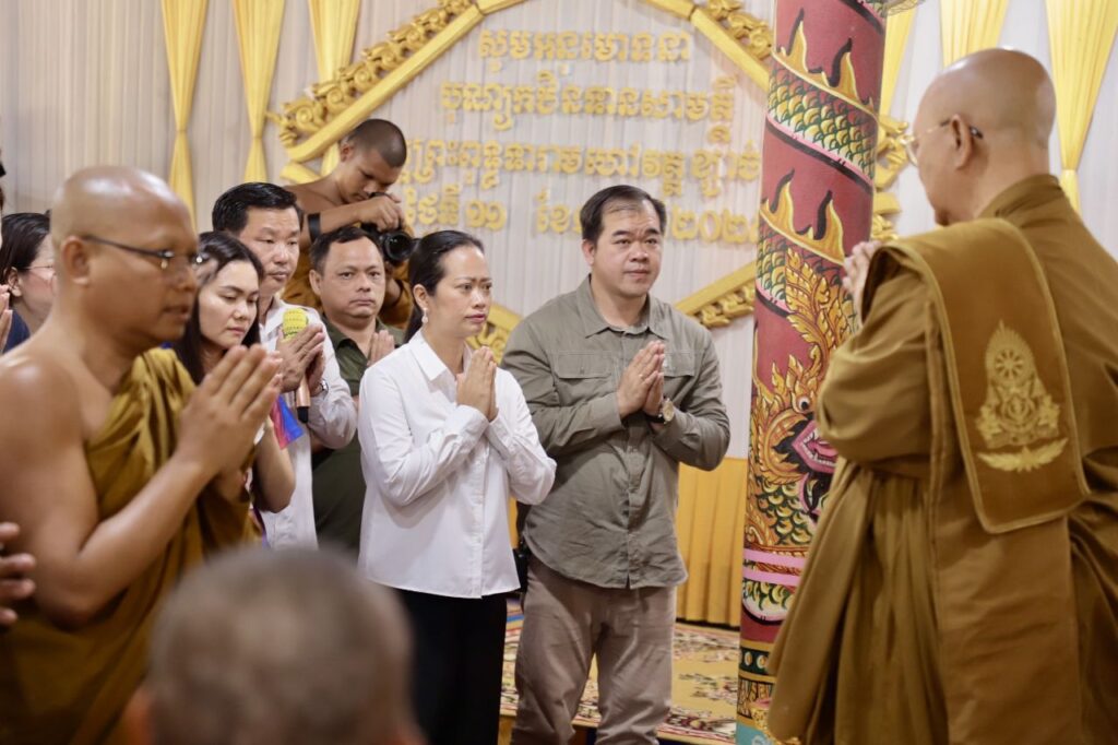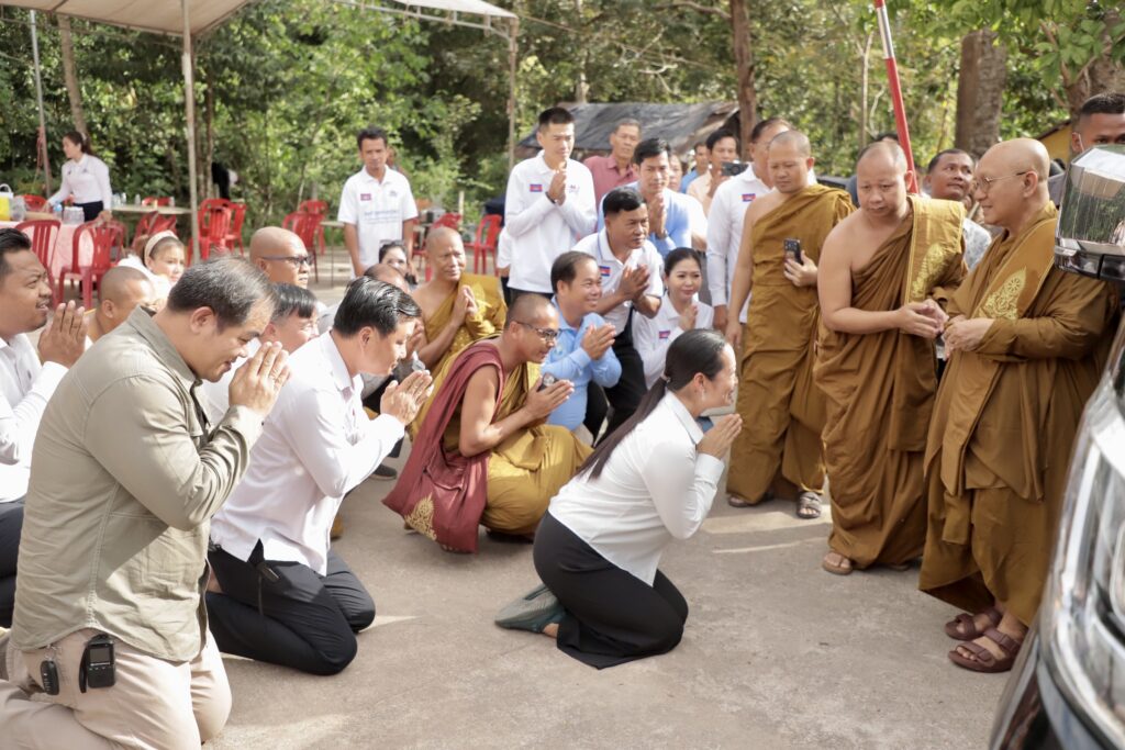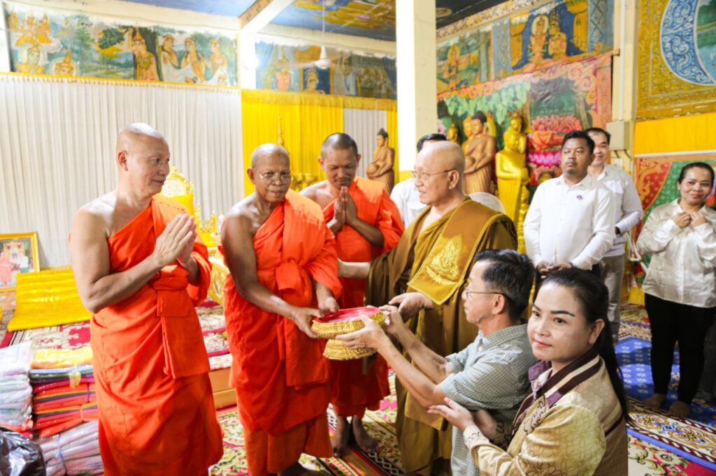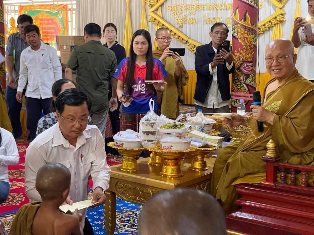 លោកជំទាវ ឈី វ៉ា អភិបាល នៃគណៈអភិបាលខេត្តកោះកុង បានក្រាបបង្គំថ្វាយព្រះរាជបដិសណ្ឋារកិច្ចចំពោះព្រះរាជដំណេីរដ៏ខ្ពង់ខ្ពស់របស់សម្តេចព្រះអភិសិរីសុគន្ធាមហាសង្ឃរាជាធិបតី កិត្តិឧទ្ទេសបណ្ឌិត បួរ គ្រី សម្តេចព្រះមហាសង្ឃរាជ នៃគណៈធម្មយុត្តិកនិកាយ នៃព្រះរាជាណាចក្រកម្ពុជា សម្តេចព្រះប្រធានគណៈសង្ឃនាយក នៃគណៈធម្មយុត្តិកនិកាយ នៃព្រះរាជាណាចក្រកម្ពុជា សម្តេចយាងនិមន្ត ក្នុងកម្មវិធីប្រោសព្រះរាជទានប្រគេនចង្ហាន់ព្រះសង្ឃ និងប្រោសព្រះរាជទានអាហារដល់ប្រជាពលរដ្ឋភៀសសឹក នៅវត្តព្រះពុទ្ធទានារាមហៅវត្តខ្សាច់ស ស្ថិតនៅភូមិអូជ្រៅ ឃុំបឹងព្រាវ ស្រុកស្រែអំបិល ខេត្តកោះកុង