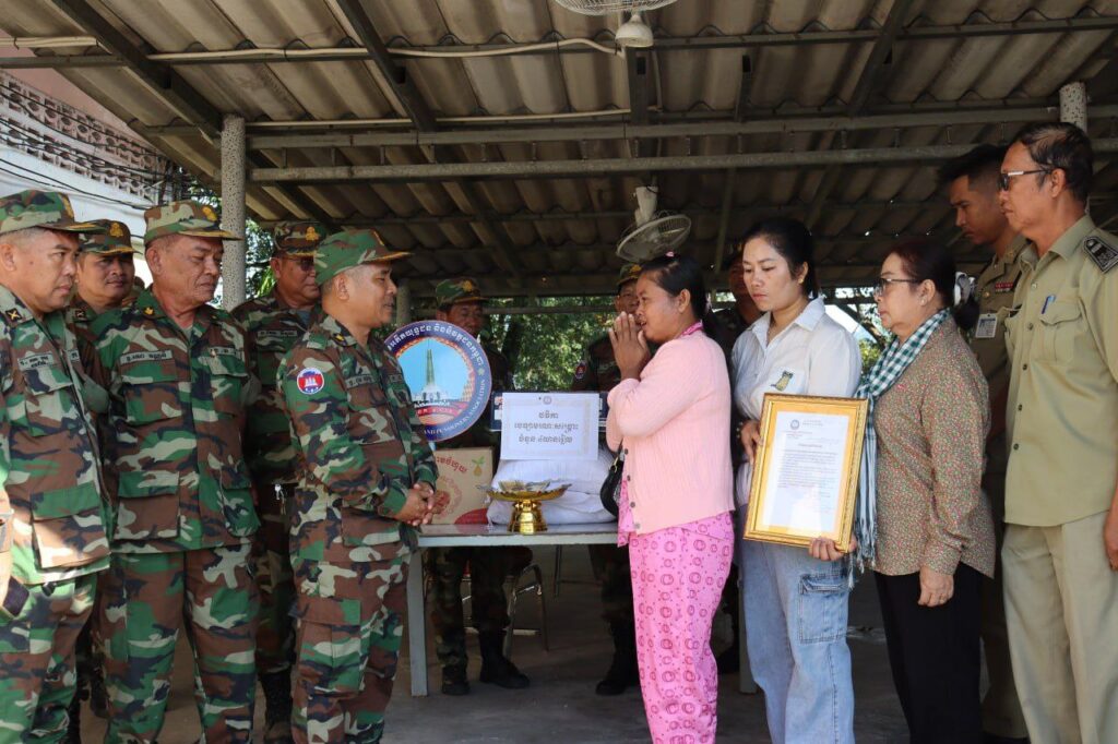 លោកឧត្តមសេនីយ៍ត្រី ជួន សុភ័ក្រ មេបញ្ជាការតំបន់ប្រតិបត្តិការសឹករងកោះកុង ជាប្រធានគណៈកម្មាធិការ អ ន ក ខេត្តកោះកុង បានចុះសួរសុខទុក្ខ ដល់គ្រួសារ នៃសពជាសមាជិក អ ន ក និងនាំយកថវិកាបេឡាមរណសង្គ្រោះ ចំនួន ៤លានរៀល និងអំណោយមនុស្សធម៌ដ៏ថ្លៃថ្លារបស់ សម្តេចមហាបវរធិបតី ហ៊ុន ម៉ាណែត នាយករដ្ឋមន្ត្រី នៃព្រះរាជអាណាចក្រកម្ពុជា ជាអនុប្រធានទី១ នៃសមាគមអតីតយុទ្ធជន និងនិវត្តជនកម្ពុជា និងលោកជំទាវបណ្ឌិត ពេជ ចន្ទមុន្នី និងសប្បុរសជន ប្រគល់ជូន ដល់គ្រួសារនៃសពលោក ឯក ឈុនលី(និវត្តជន) ជាសមាជិក អ ន ក នៅភូមិ ចាំយាម ឃុំបាក់ខ្លង ស្រុកមណ្ឌលសីមា ខេត្តកោះកុង