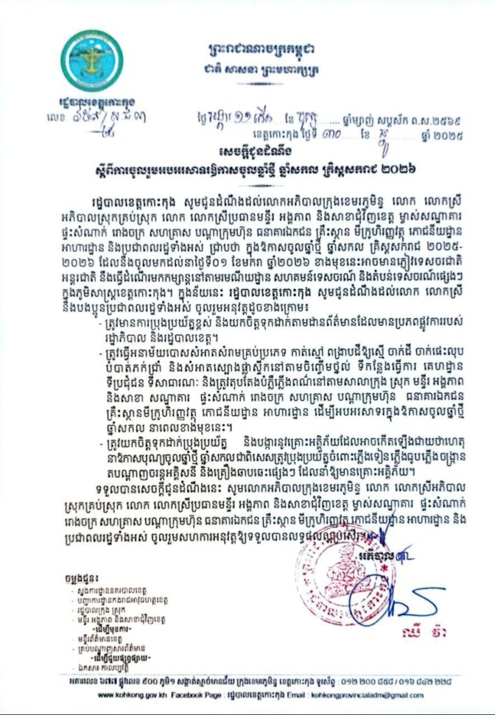 សេចក្តីជូនដំណឹង ស្តីពីការចូលរួមអបអរសាទរឱកាសចូលឆ្នាំថ្មី ឆ្នាំសកល គ្រិស្តសករាជ ២០២៦