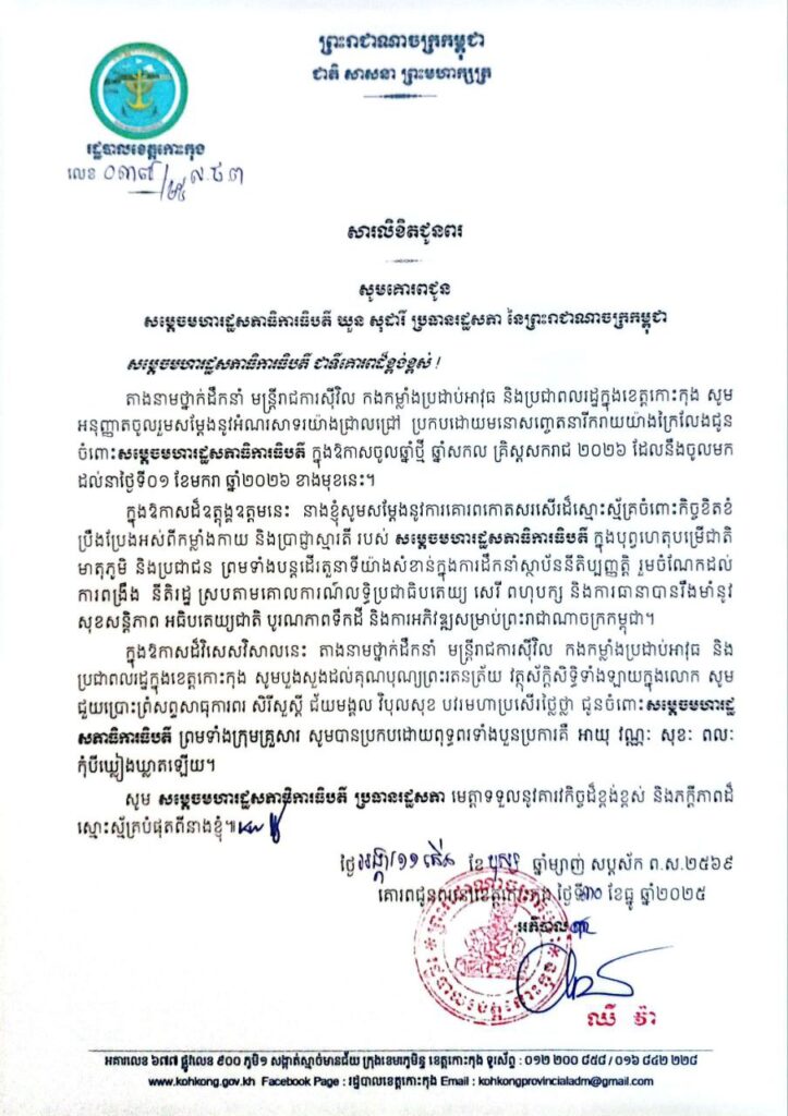 សារលិខិតជូនពរ សូមគោរពជូន សម្តេចមហារដ្ឋសភាធិការធិបតី ឃួន សុដារី ប្រធានរដ្ឋសភា នៃព្រះរាជាណាចក្រកម្ពុជា ក្នុងឱកាសចូលឆ្នាំថ្មី ឆ្នាំសកល គ្រិស្តសករាជ ២០២៦