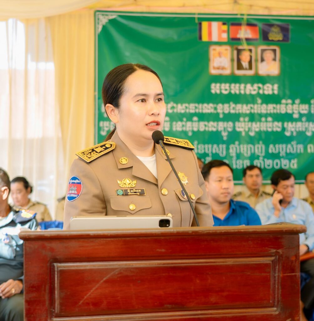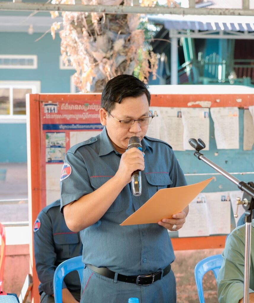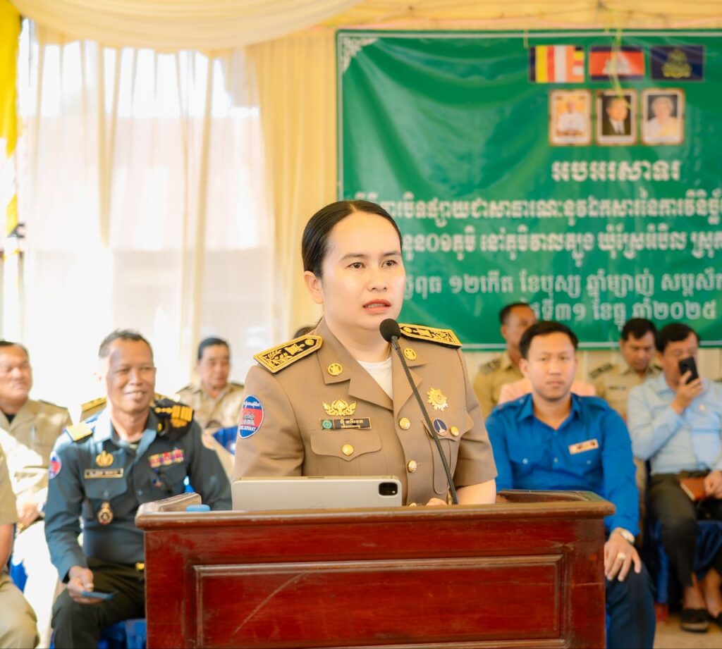 ថ្លែងក្នុងពិធីនេះ លោកស្រីអភិបាលរងខេត្ត បានមានប្រសាសន៍ថា ថ្ងៃនេះគឺជាការជួបជុំលើកទី២ ជាកិច្ចប្រជុំផ្សព្វផ្សាយស្តីពីការបិទផ្សាយជាសាធារណៈ នូវឯកសារនៃការវិនិច្ឆ័យ បន្ទាប់ពីការជួបជុំលើកទី១ នៅសាលាឃុំស្រែអំបិល កាលពីថ្ងៃទី៣០ ខែកញ្ញា ឆ្នាំ២០២២ ហើយយើងធ្វើប្រតិបត្តិការបច្ចេកទេស ដើម្បីប្រមូលទិន្នន័យ ដែលមានការកំណត់ព្រំ វាស់វែង និងវិនិច្ឆ័យរួច កសាងជាឯកសារនៃការវិនិច្ឆ័យមានប្លង់សុរិយោដី និងបញ្ជី ឈ្មោះម្ចាស់ដីដែលយើងនឹងដាក់ជូនសាធារណជន ដើម្បីពិនិត្យតវ៉ាចាប់ពីថ្ងៃបិទផ្សាយតទៅដែលមានរយៈពេល ១៥ថ្ងៃ។ ដំណើរការការងារចុះបញ្ជីដីធ្លីមានលក្ខណៈជាប្រព័ន្ធនេះ ត្រូវបានកំណត់ នីតិវិធីច្បាស់លាស់ ក្នុងអនុក្រឹត្យលេខ ៤៦អនក្រ.បក ចុះថ្ងៃទី៣១ ខែឧសភា ឆ្នាំ២០០២ របស់ រាជរដ្ឋាភិបាលកម្ពុជាស្តីពីនីតិវិធីនៃការកសាងប្លង់សុរិយោដី និងសៀវភៅគោលបញ្ជីដីធ្លី និងសេចក្ដីណែនាំលេខ០០១ ដនស/សដ ចុះថ្ងៃទី១៩ ខែសីហា ឆ្នាំ២០០២ របស់ក្រសួងរៀបចំ ដែនដី នគរូបនីយកម្ម និងសំណង់ សម្រាប់តំបន់វិនិច្ឆ័យ ដែលចែកជា ៥ដំណាក់កាលរួមមាន៖