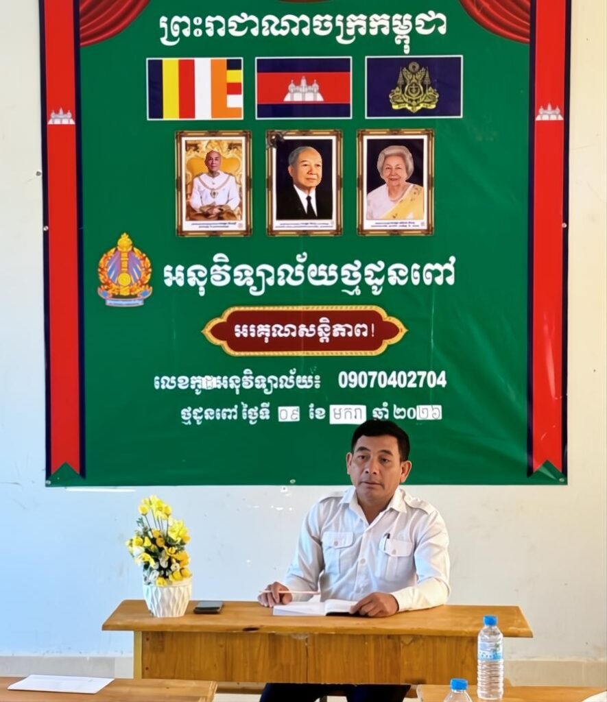 លោក យឹម វិចិត្រ ប្រធានការិយាល័យអប់រំ យុវជន និងកីឡាស្រុកថ្មបាំង អញ្ជើញដឹកនាំមន្រ្តីការិយាល័យអប់រំ បើកកិច្ចប្រជុំណែនាំ ការធ្វើបច្ចុប្បន្នភាពគណៈកម្មការគ្រប់គ្រងសាលារៀន និងសាលារៀនសុវត្ថិភាព និងភាពធន់នឹងអាកាសធាតុ នៅសាលាកម្រងថ្មដូនពៅ ស្រុកថ្មបាំង ខេត្តកោះកុង។