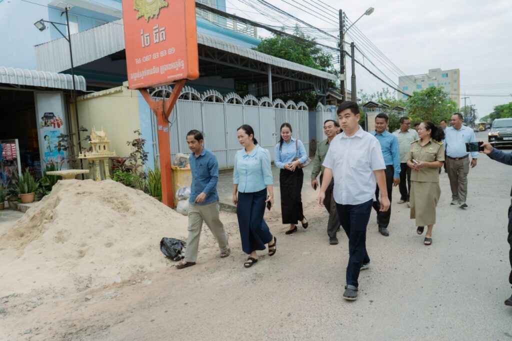 លោកជំទាវ ឈី វ៉ា អភិបាល នៃគណៈអភិបាលខេត្តកោះកុង បានអញ្ជើញចុះពិនិត្យដំណើរការសាងសង់ផ្លូវកៅស៊ូ AC ស្ថិតនៅភូមិ២ សង្កាត់ស្មាច់មានជ័យ ក្រុងខេមរភូមិន្ទ ជាគម្រោងរបស់រដ្ឋបាលខេត្តប្រចាំឆ្នាំ២០២៥