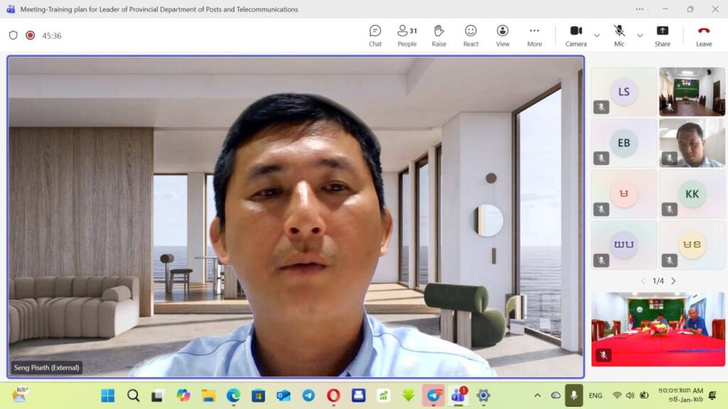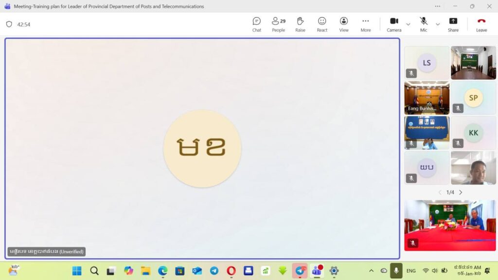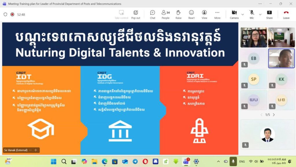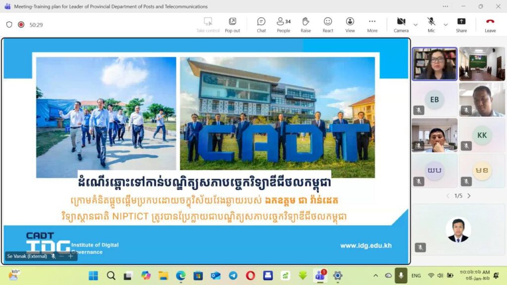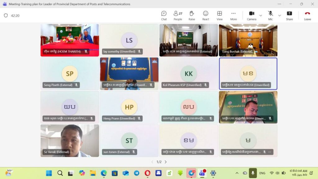 មន្ទីរប្រៃសណីយ៍និងទូរគមនាគមន៍ខេត្តកោះកុង៖លោក ទូច វុទ្ធី ប្រធានមន្ទីរប្រៃសណីយ៍និងទូរគមនាគមន៍ខេត្តកោះកុង អមដោយប្រធានការិយាល័យជំនាញមន្ទីរពីររូប បានអញ្ជេីញចូលរួមកិច្ចប្រជុំពិភាក្សាអំពីការរៀបចំវគ្គបណ្តុះបណ្តាលជូនថ្នាក់ដឹកនាំមន្ទីរប្រៃសណីយ៍និងទូរគមនាគមន៍ទាំង ២៤ខេត្ត ក្នុងគោលបំណងពង្រឹងសមត្ថភាព និងចែករំលែកចំណេះដឹង