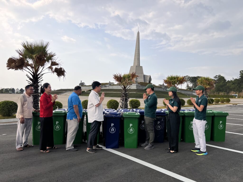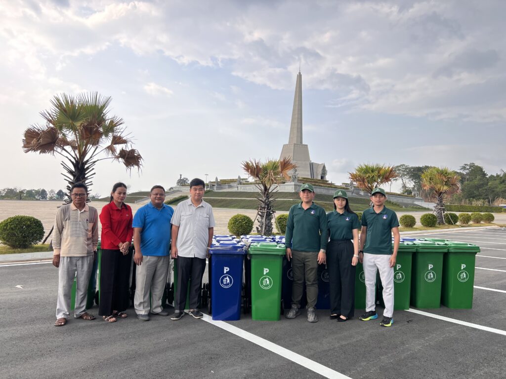 លោក ភូថង សេរីវុឌ្ឍី អភិបាល នៃគណៈអភិបាលក្រុងខេមរភូមិន្ទ លោកអភិបាលរង លោកស្រីនាយក និងចៅសង្កាត់រងទី១ សង្កាត់ស្មាច់មានជ័យ បានអញ្ជើញប្រគល់ធុងសំរាមចំនួន៣០ធុង ដើម្បីដាក់ពង្រាយតាមទីធ្លានៅស្តូបអនុស្សាវរីយ៍នយោបាយ ឈ្នះ ឈ្នះ កោះកុង