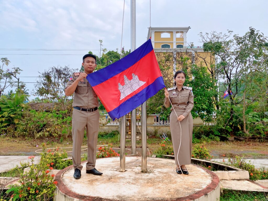 ក្រុមប្រឹក្សាស្រុក គណៈអភិបាលស្រុក មន្រ្តីរាជការសាលាស្រុកស្រែអំបិល បានចូលរួមគោរព ទង់ជាតិ នៃព្រះរាជាណាចក្រកម្ពុជា នៅសាលាស្រុកស្រែអំបិល ខេត្តកោះកុង។