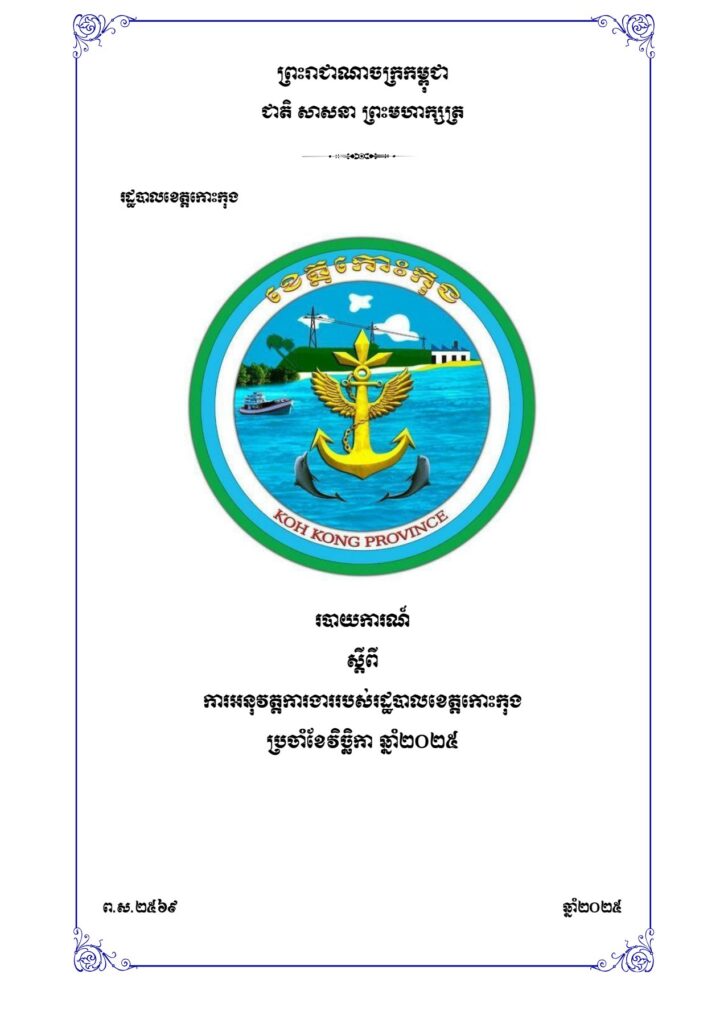 របាយការណ៍ ស្តីពីការអនុវត្តការងាររបស់រដ្ឋបាលខេត្តកោះកុង ប្រចាំខែវិច្ឆិកា ឆ្នាំ២០២៥