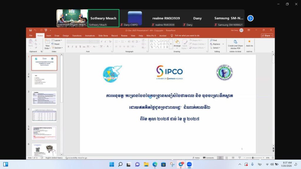 លោក ចក់ ត្រឹង ប្រធានការិយាល័យសង្គមកិច្ច និងសុខភាពសង្គមស្រុក បានចូលរួមកិច្ចប្រជុំ ស្ដីពីការអនុវត្តគម្រោង “ ការ ចែកជូនដោយឥតថ្លៃនូវចង្ក្រានសន្សំសំចៃថាមពល និងធុងចម្រុះទឹកស្អាត “ ជូនដល់ប្រជាពលរដ្ឋរស់នៅខេត្តកោះកុង តាមរយៈប្រព័ន្ធ online Zoom ។