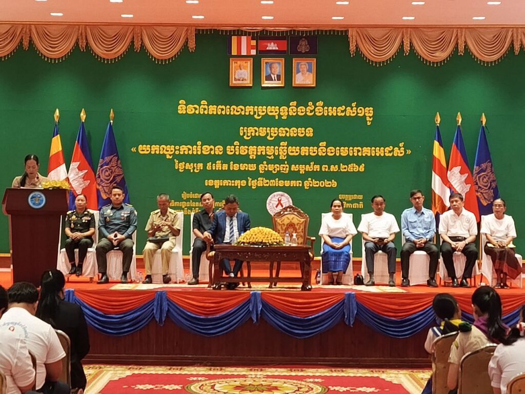 កោះកុង ថ្ងៃសុក្រ ៥កើត ខែមាឃ ឆ្នាំម្សាញ់ សប្តស័ក ពុទ្ធសករាជ ២៥៦៩ ត្រូវនឹងថ្ងៃទី២៣ ខែមករា ឆ្នាំ២០២៦ លោក គង់ សំរិទ្ធ ប្រធានមន្ទីរសង្គមកិច្ច អតីតយុទ្ធជន និងយុវនីតិសម្បទាខេត្តកោះកុង បានចាត់មន្ត្រី ០១រូប ចូលរួមសិក្ខាសាលាផ្សព្វផ្សាយអំពីអេដស៍ នៅទិវាពិភពលោកប្រយុទ្ធនឹងជំងឺអេដស៍ ១ធ្នូ ឆ្នាំ២០២៥ ក្រោមប្រធានបទ “ការយកឈ្នះការរំខានបរិវត្តកម្ម” នៅសាលមហោស្រពខេត្ត ក្រោមអធិបតីភាពឯកឧត្តម ផៃធូន ផ្លាមកេសន សមាជិកក្រុមប្រឹក្សាខេត្តកោះកុង និងលោកជំទាវ ឈី វ៉ា អភិបាល នៃគណៈអភិបាលខេត្ត ។