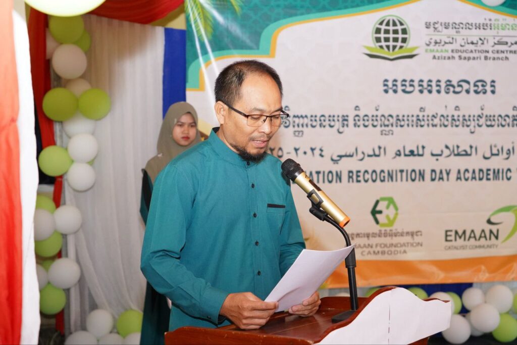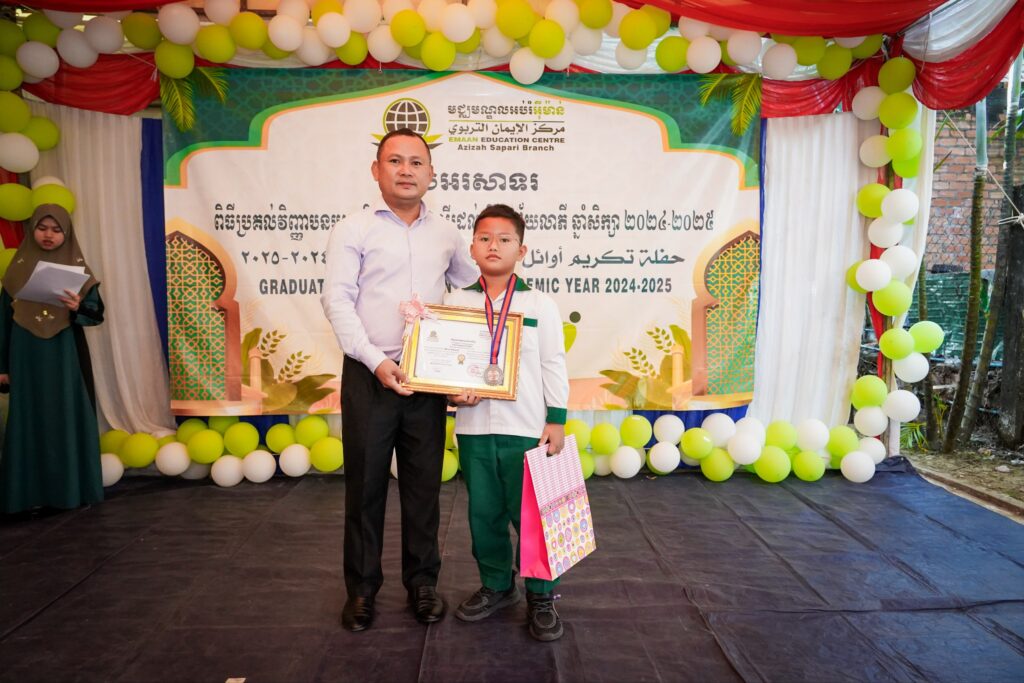 លោក ម៉ុត សុខា អភិបាលរង នៃគណៈអភិបាលក្រុងខេមរភូមិន្ទ បានអញ្ជើញជាអធិបតីក្នុងពិធីប្រគល់វិញ្ញាបនបត្រ និងប័ណ្សរសើរដល់សិស្សឆ្នើមប្រចាំឆ្នាំសិក្សា២០២៥-២០២៦។ ពិធីបានរៀបចំឡើងនៅមជ្ឈមណ្ឌលអប់រំអ៊ីម៉ាន ស្ថិតនៅភូមិ៤ សង្កាត់ដងទង់ ក្រុងខេមរភូមិន្ទ ខេត្តកោះកុង។ វេលាម៉ោង ៨:៣0 នាទីព្រឹក